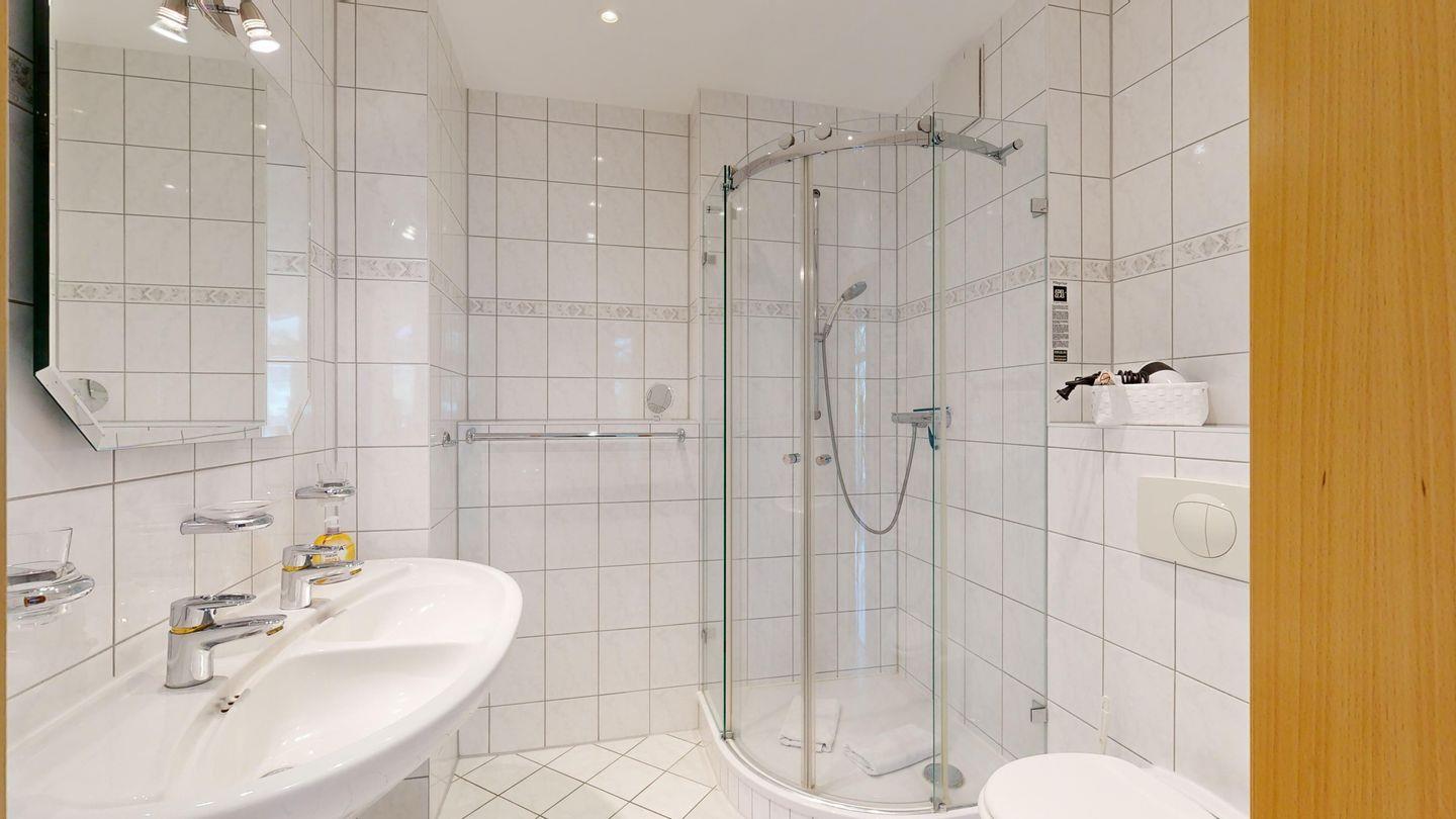 * 1 Badezimmer mit Dusche, WC und Föhn (Badsanierung in 2012)