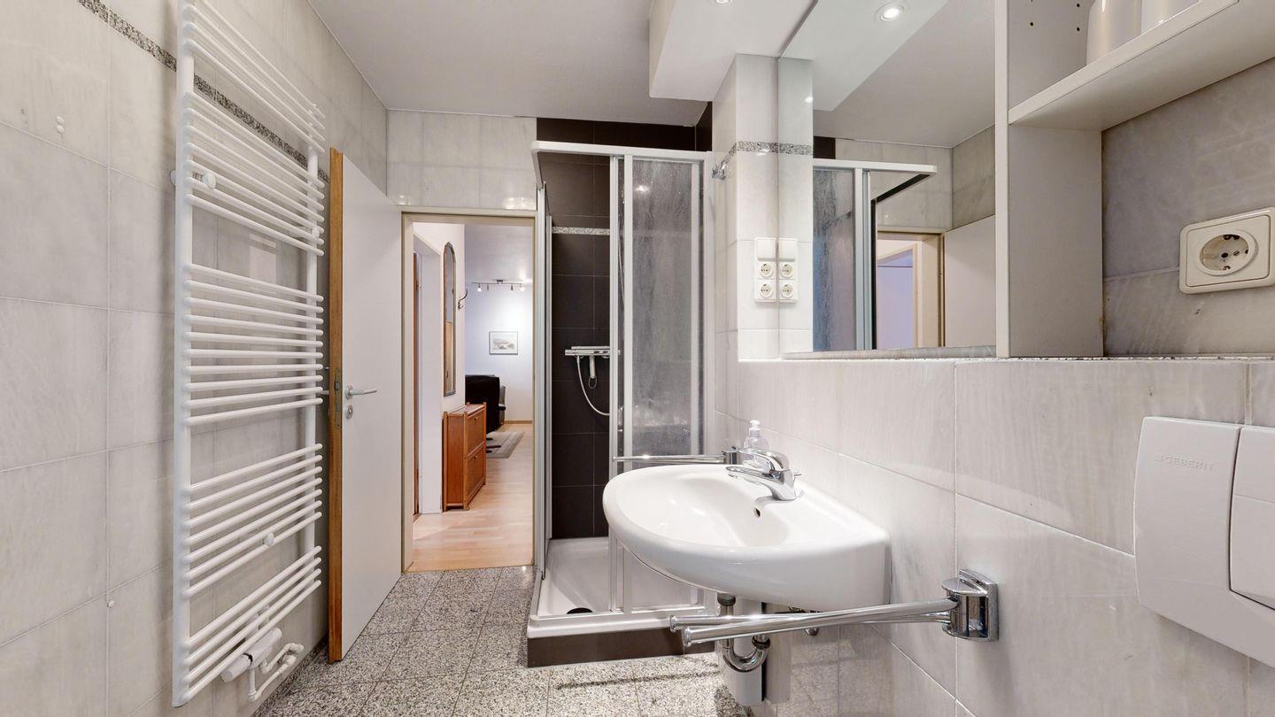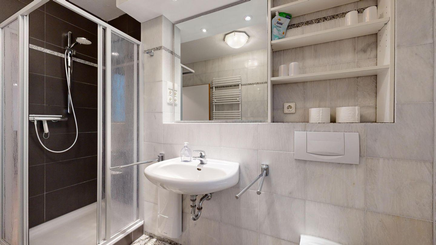 * 1 Badezimmer mit Dusche, WC und Föhn