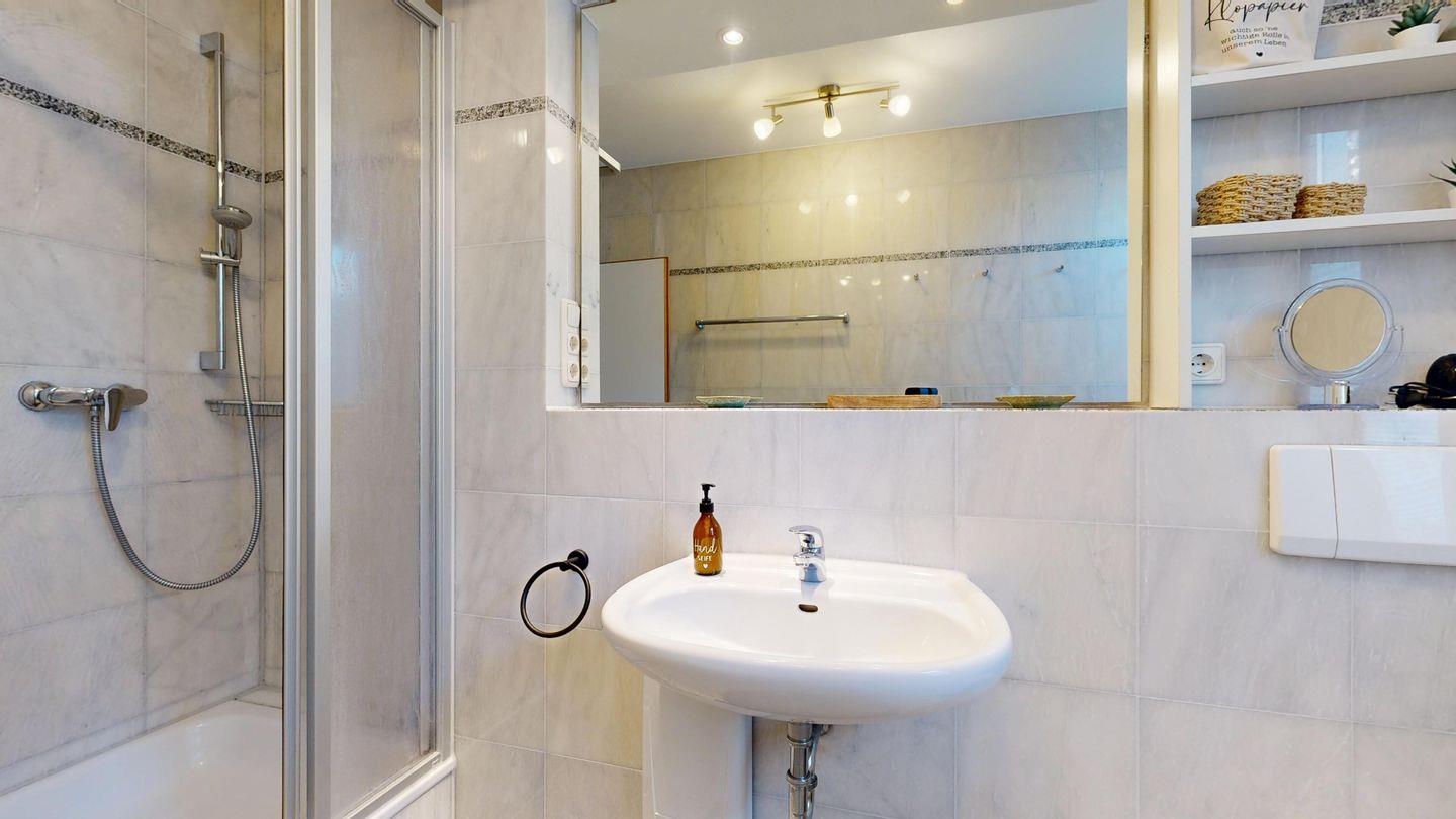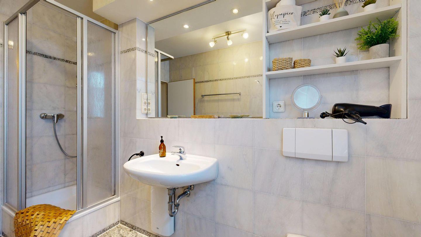 * 1 Badezimmer mit Dusche, WC und Föhn