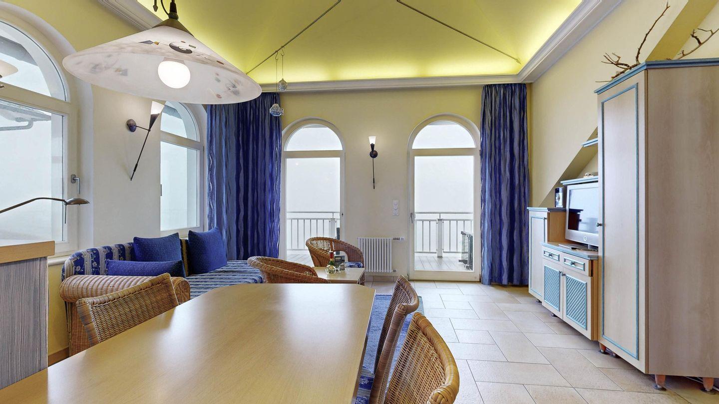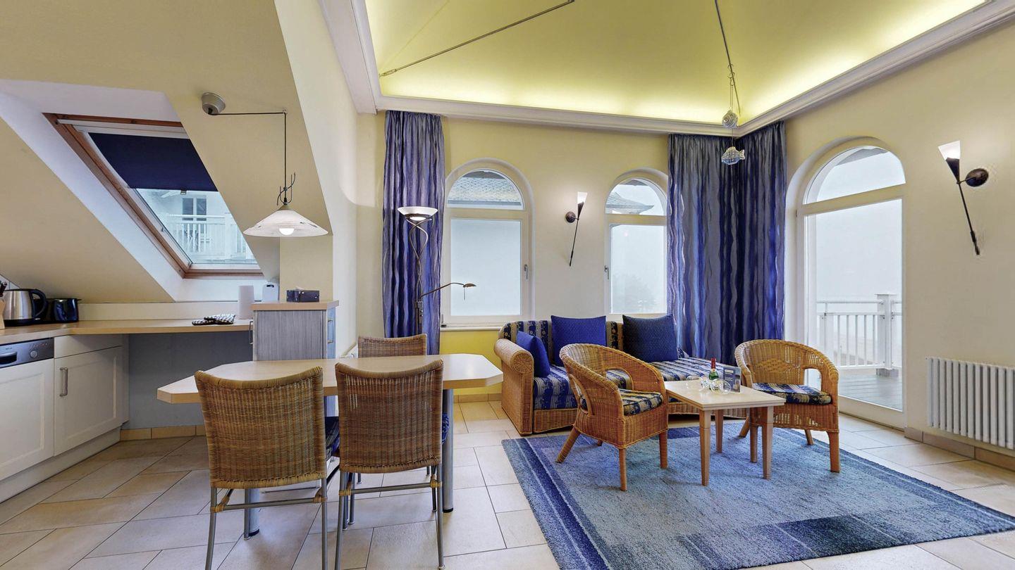 Diese großzügige Ferienwohnung bietet einen atemberaubenden Blick über die gesamte Binzer Bucht bis hin zu den Kreidefelsen. Genießen Sie die Nähe zum Strand und die zentrale Lage, die Ihnen vielfältige Freizeitmöglichkeiten bietet. Die große Ferienwohnung verfügt über zwei separate Schlafzimmer.