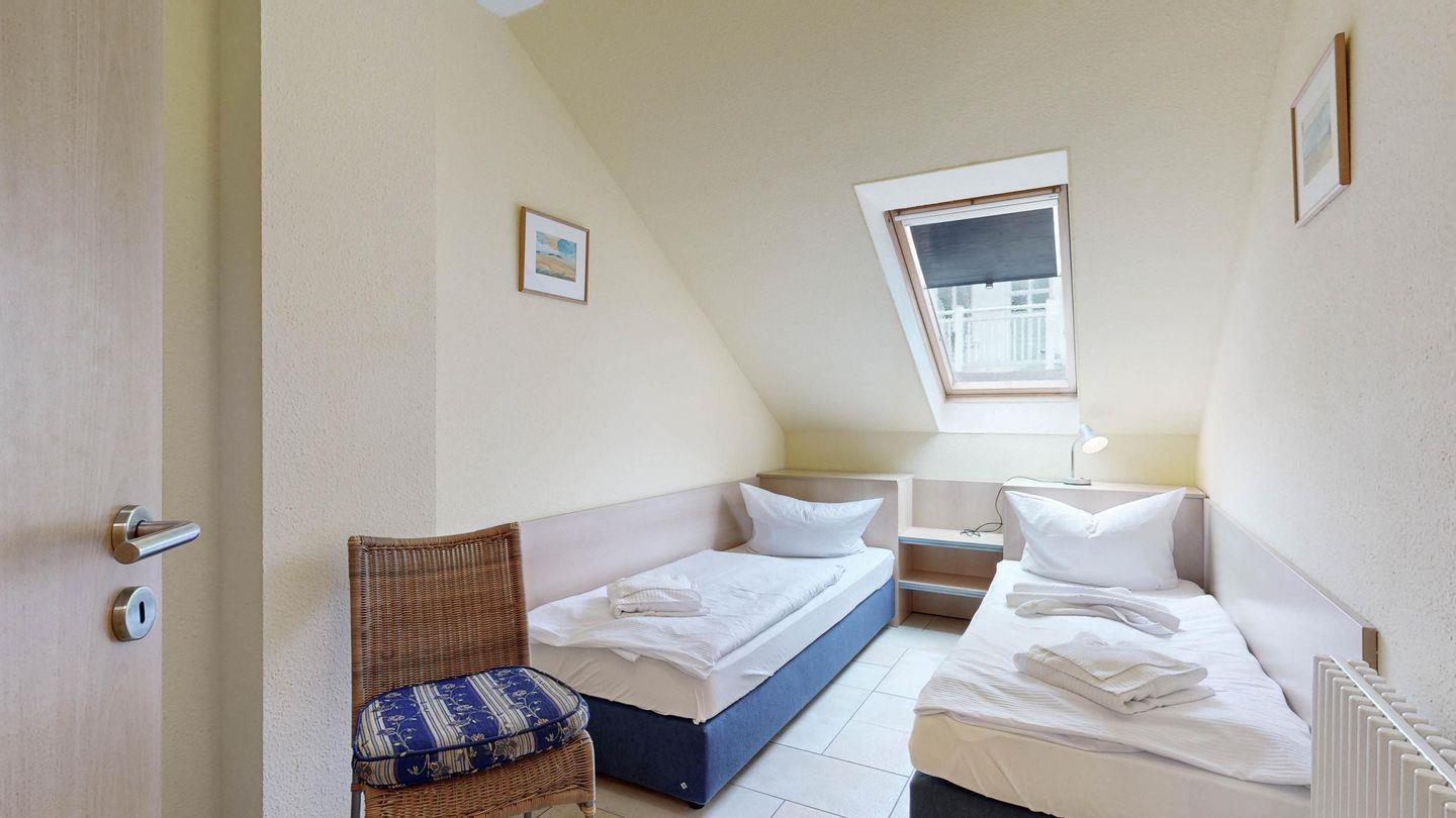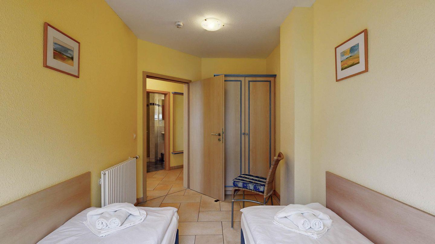 * 1 Schlafzimmer mit zwei Einzelbetten