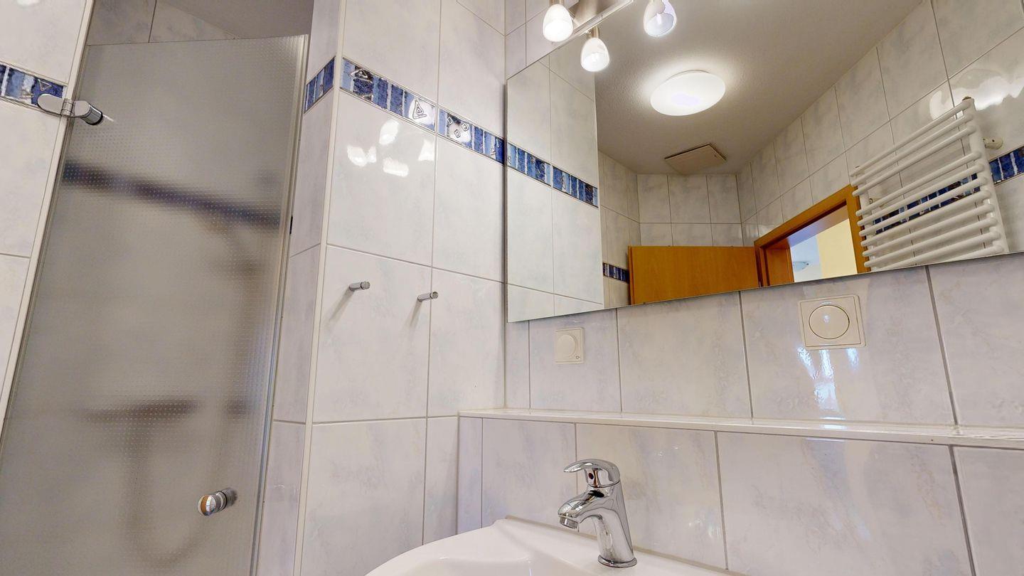 * 1 Badezimmer mit Dusche, WC und Föhn