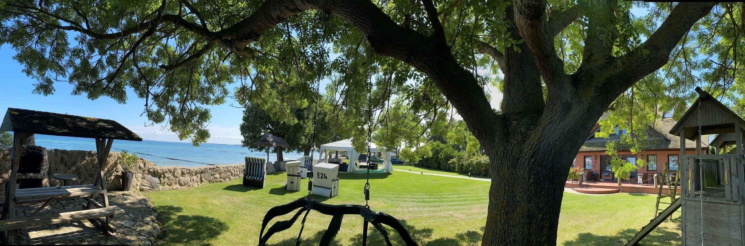 Selbstverständlich kann die große Wiese auch zum Ballspielen oder Sonnenbaden genutzt werden. Ein Kinderspielplatz sorgt für den passenden Zeitvertreib der kleinen Gäste.