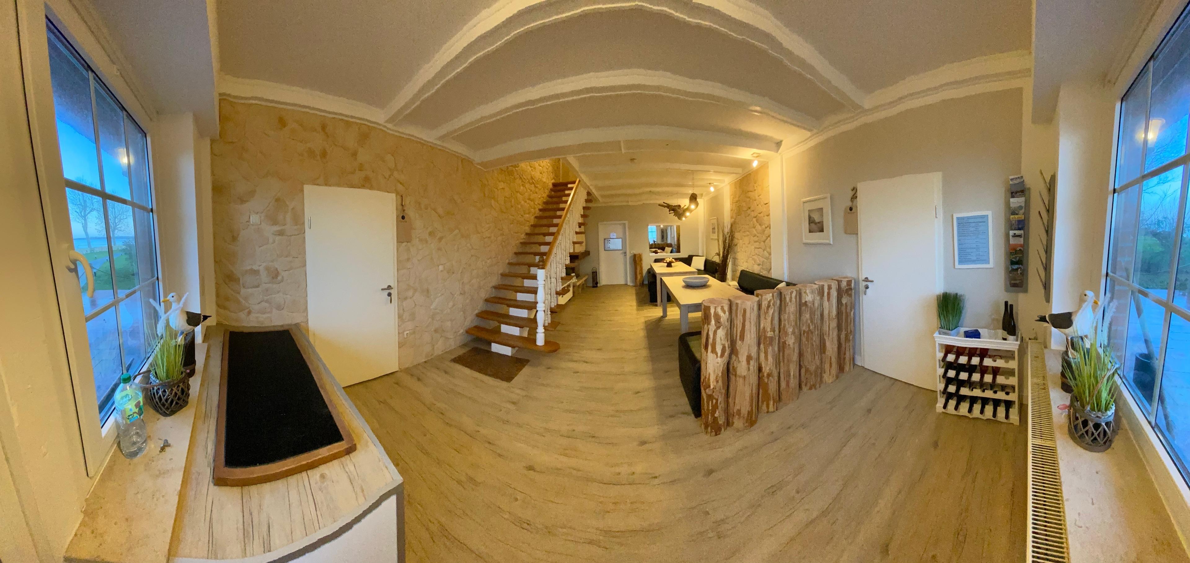 Im Erdgeschoß des Hauses finden Sie das Kaminzimmer. Hier lässt es sich herrlich mit anderen Gästen aus den unterschiedlichsten Regionen plaudern oder auch ein wärmendes Feuer genießen, wenn draußen, besonders in der Herbst- & Winterzeit die Stürme tosen. Außerdem stehen für die Gäste verschiedene Gesellschaftsspiele bereit.