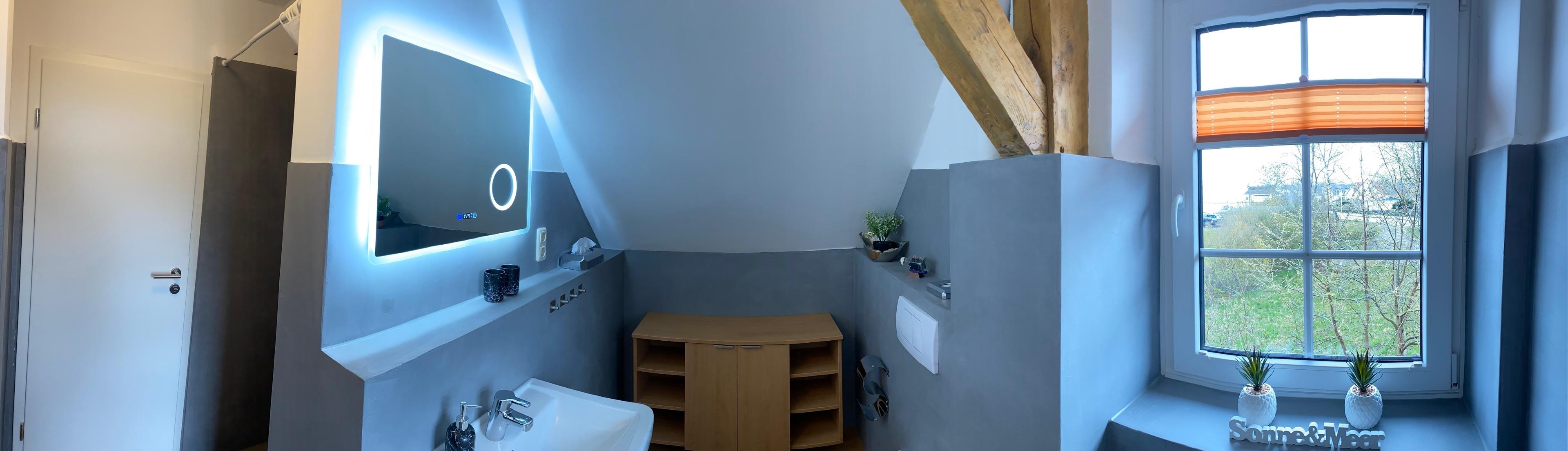 Sonnige 2 Raum Wohnung ( ca. 45 m²) für 2 - 4 Personen in der 1. Etage mit Meerblick. Großes Wohnzimmer mit gemütlicher Essecke, Couchgarnitur, Flachbildfernsehr und Radio. Kleiner Flur mit Garderobe und großem Einbauschrank & Duschbad mit ebenerdiger Dusche. Kleines Schlafzimmer mit Meerblick direkt aus dem großem Doppelbett. Die Küche ist mit allem ausgestattet, was man benötigt um sich ein vorzügliches Frühstück oder Abendessen zu bereiten. Im Außenbereich steht Ihnen unsere Loungeterrase mit Gartenmöbel, Strandkörben, Meerblickgrillkamin und ein PKW-Stellplatz zur Verfügung.