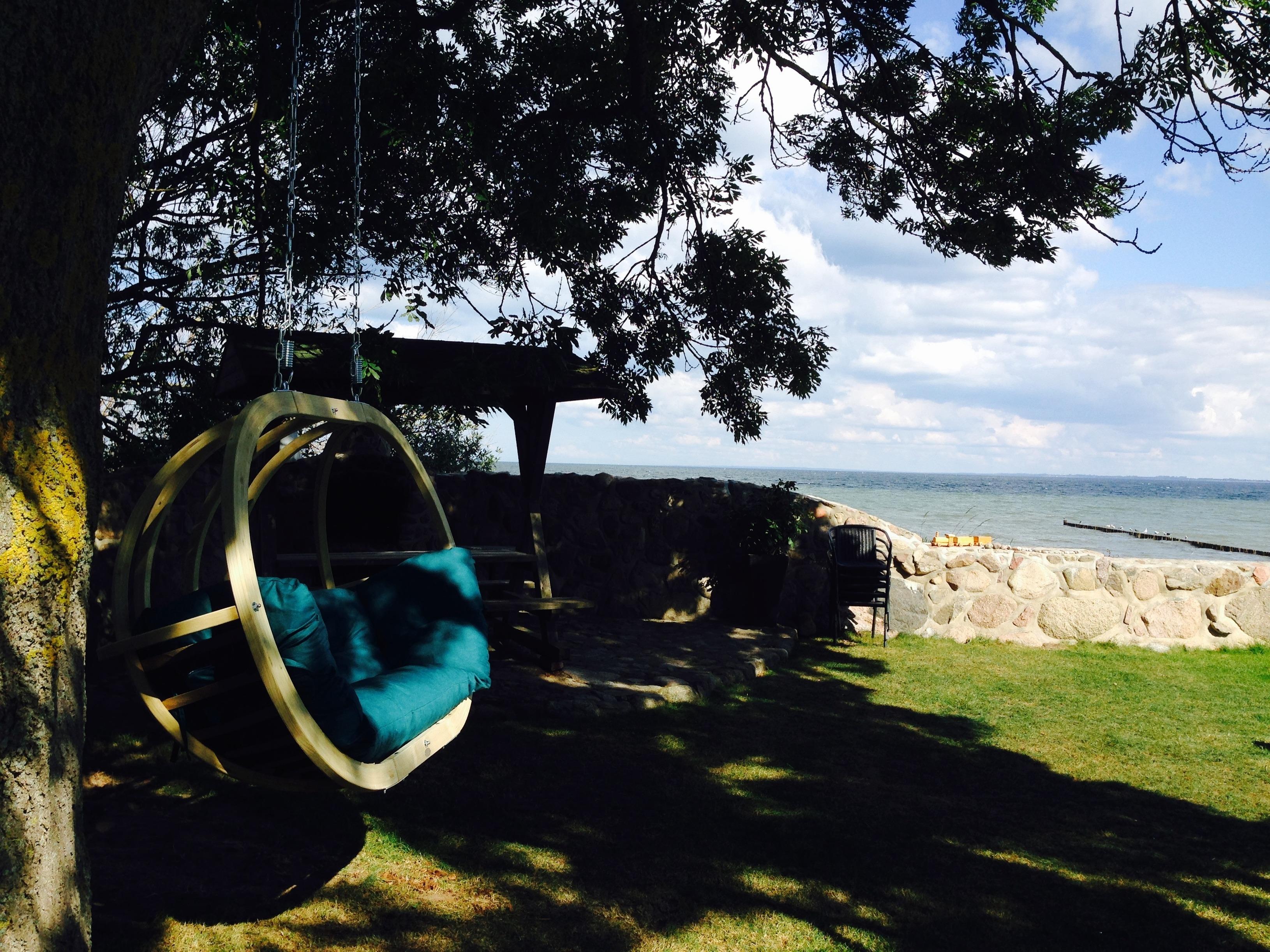 Auf der Sonnenwiese & Loungeterrasse vorm Ferienhaus finden Sie gemütliche und windgeschützte Sitzecken sowie den Grillkamin mit unverbautem Meerblick.