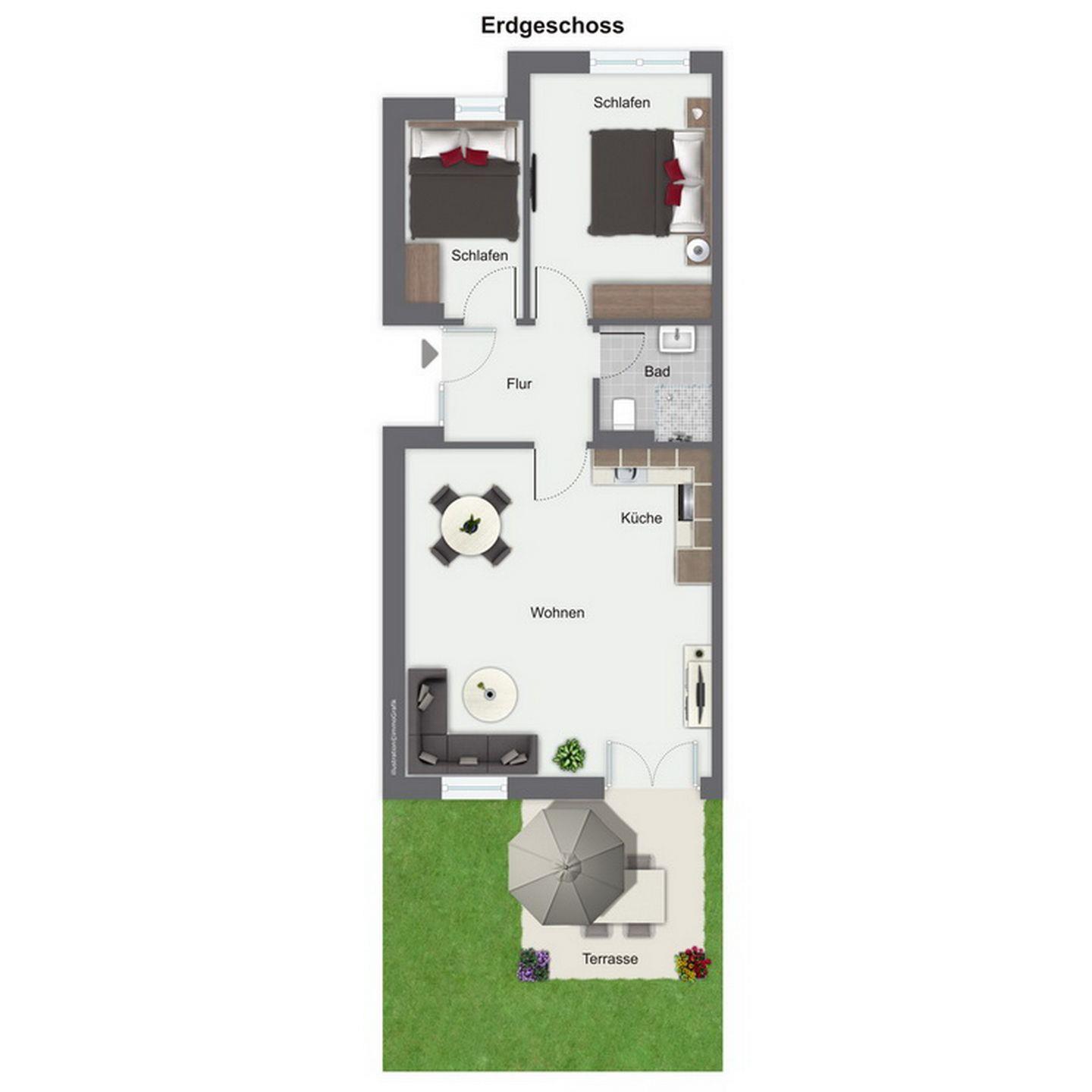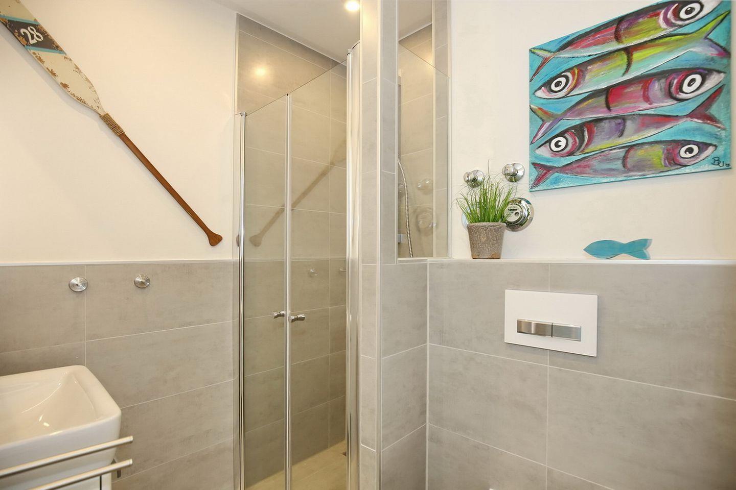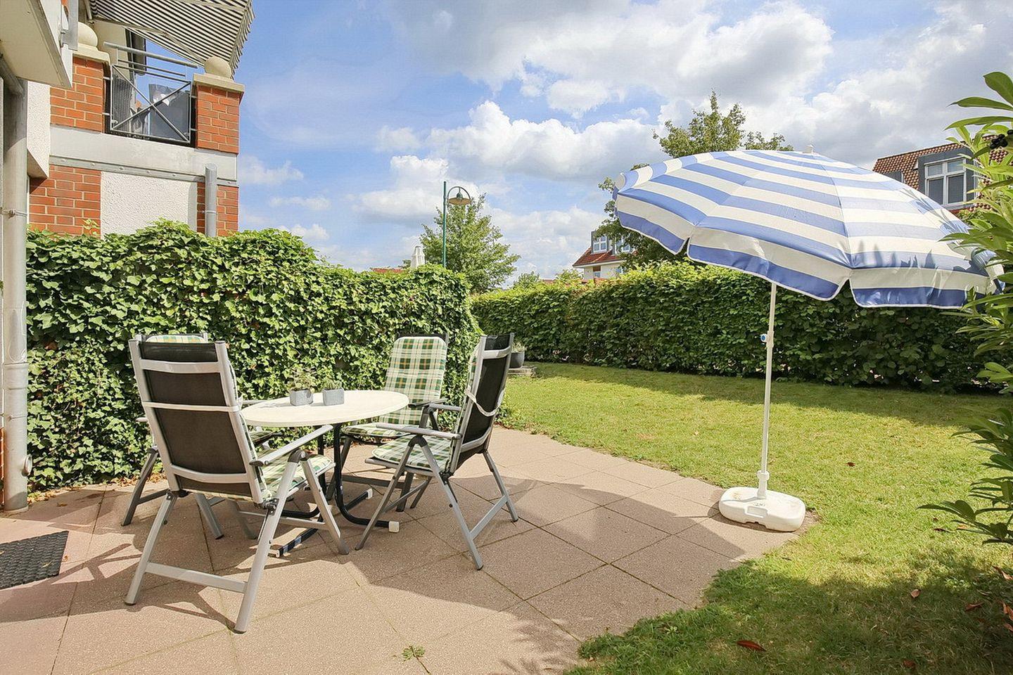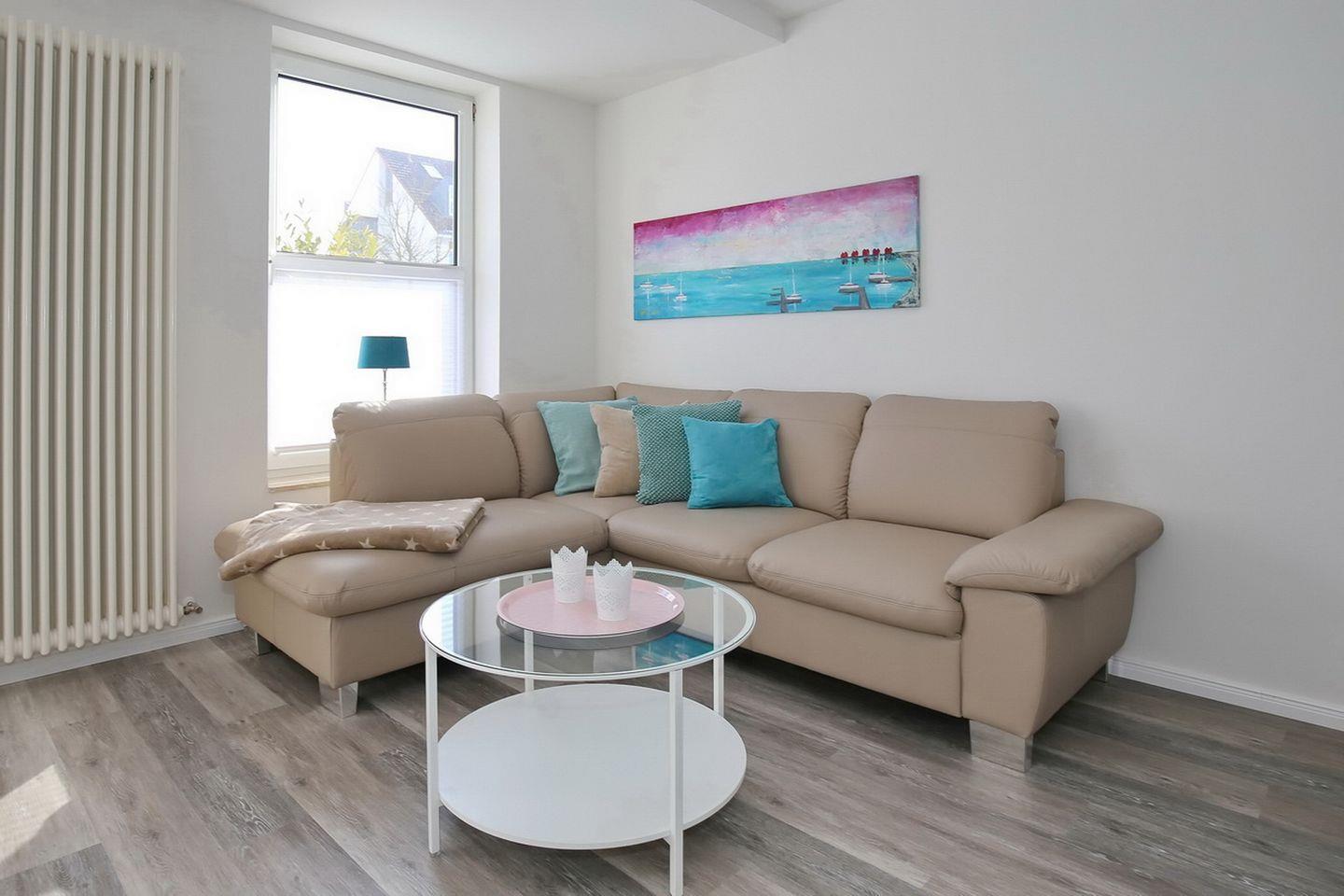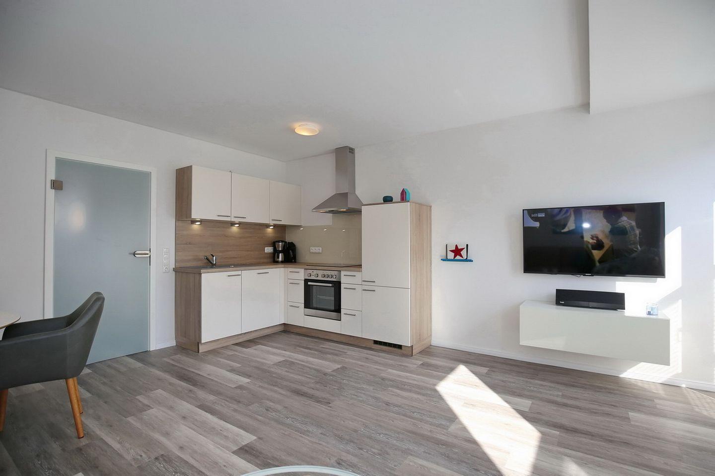 Die traumhaft schöne 3-Zimmer-Ferienwohnung im Erdgeschoss bietet Platz auf etwa 56qm. Die Wohnung wurde mit viel Liebe und hochwertigen Möbeln ausgestattet. Ein gemütliches Wohnzimmer mit offener Wohnküche, zwei Schlafzimmer sowie ein Duschbad bieten dir genügend Platz. Die möblierte Terrasse liegt in Süd-Ost-Lage. Zum Strand sind es ca. 400 Meter.
