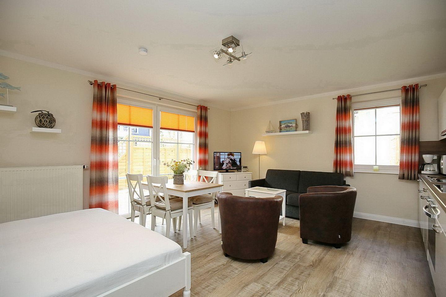 Die Ferienwohnung Nr. 8 in der Strandvilla Krabbe ist eine 1-Zimmerwohnung für bis zu 4 Personen.