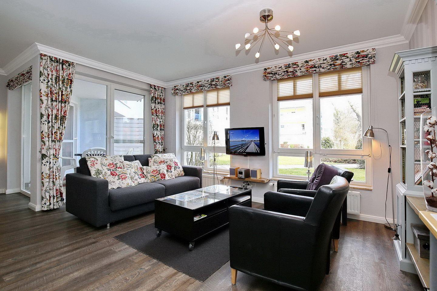 Urgemütlich ist diese ca. 55 m² große Ferienwohnung eingerichtet. Sie empfängt dich im modernen Landhauslook und wird so zum gemütlichen Urlaubsplatz für deinen Urlaub in Boltenhagen. Die Wohnung liegt im Erdgeschoss und hat ein Wohnzimmer mit Küchenzeile, ein Schlafzimmer, ein Duschbad und eine zum Innenhof ausgerichtete Terrasse. Der Strand ist nur ca. 70 Meter entfernt.