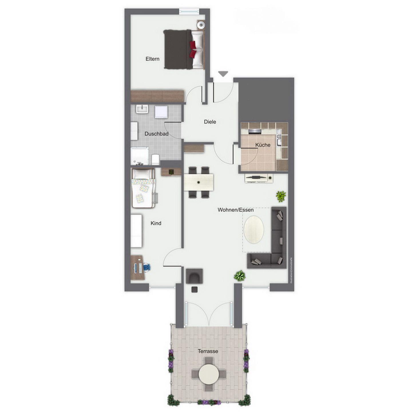 Auf ca. 65 m² kannst du in diesem 3-Zi-Appartment deinen Urlaub genießen. Die Wohnung mit Terrasse in Süd-Ost Lage findest du im Erdgeschoss. Dich erwartet ein Wohn- und Essbereich, eine separate Küche, zwei Schlafzimmer und ein Duschbad. Die Entfernung zum Strand von der Ferienanlage Sünnslag beträgt ca. 400 m.