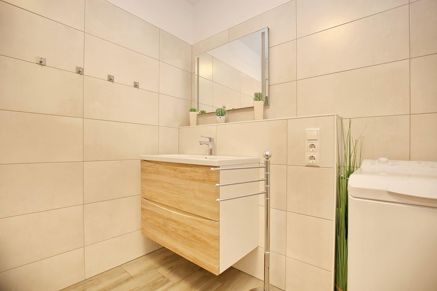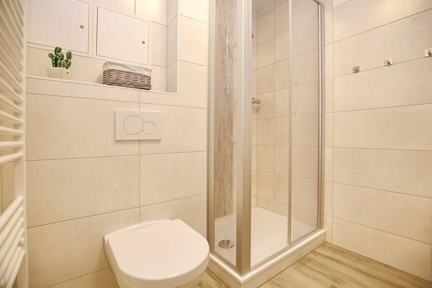 Im Duschbad wurden Fliesen als Bodenbelag gewählt. Haustiere sind in dieser Nichtraucherwohnung nicht erlaubt.