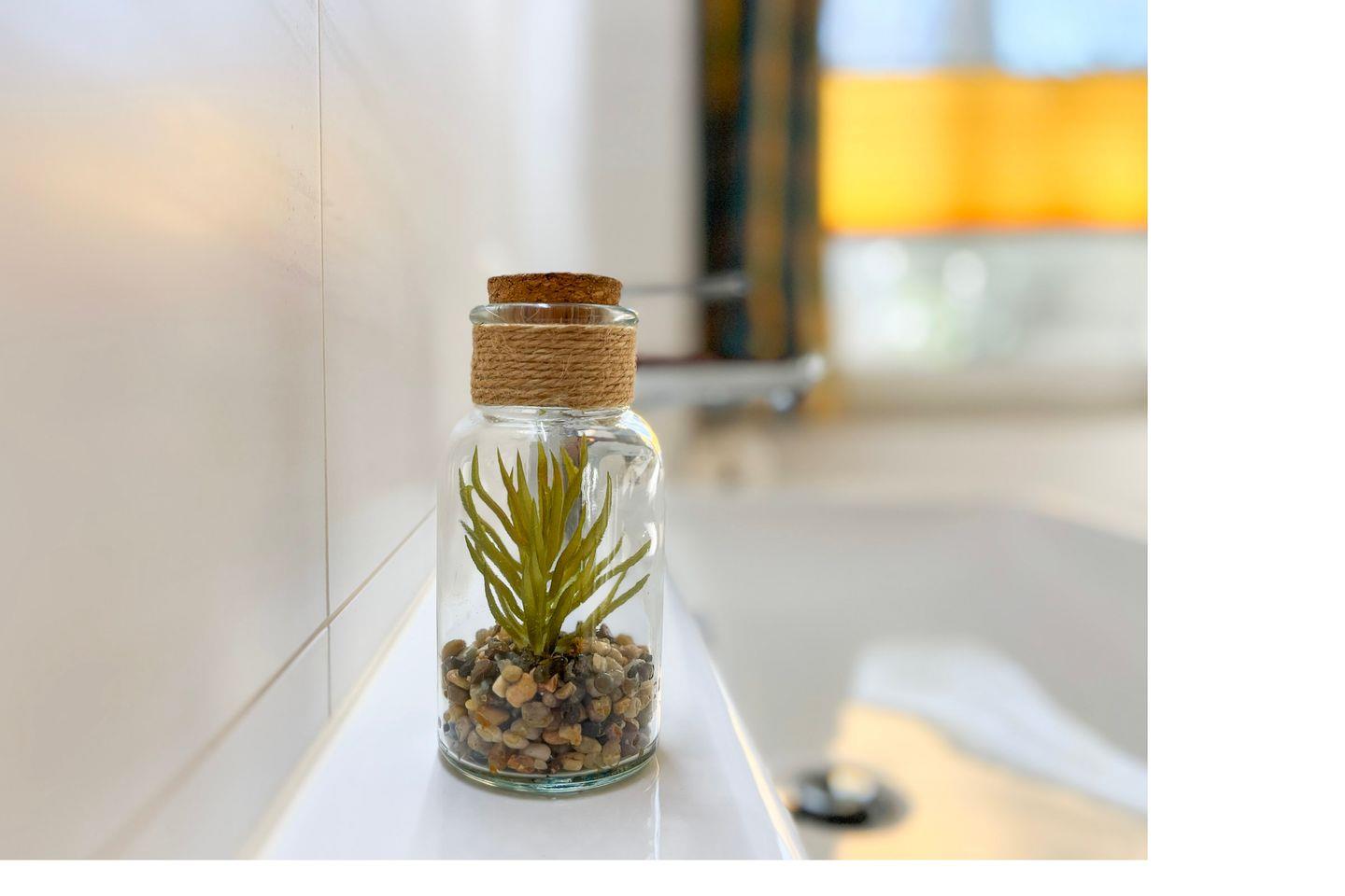 In den Schlafzimmern wurde als Bodenbelag Laminat verlegt. Das Wohnzimmer und die Küche sind mit einem Vinylbelag ausgelegt. Das Bad ist gefliest. Als Sicht- und Sonnenschutz sind an den Fenstern Vorhänge und Plissees. Das Ferienhaus wurde zusätzlich auch mit Fliegenschutzgittern ausgerüstet (bis auf die Terrassentür).