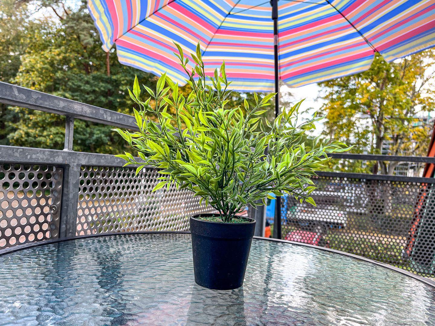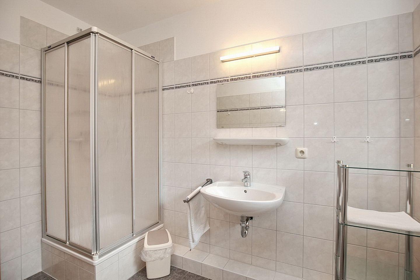 Die im Wohnbereich integrierte Küche bietet dir eine Mikrowelle, einen Herd mit Cerankochfeld und Backofen, einen Geschirrspüler, einen Kühlschrank, einen Wasserkocher und eine Kaffeemaschine. Die Wohnung verfügt über ein gefliestes Duschbad mit Fenster.