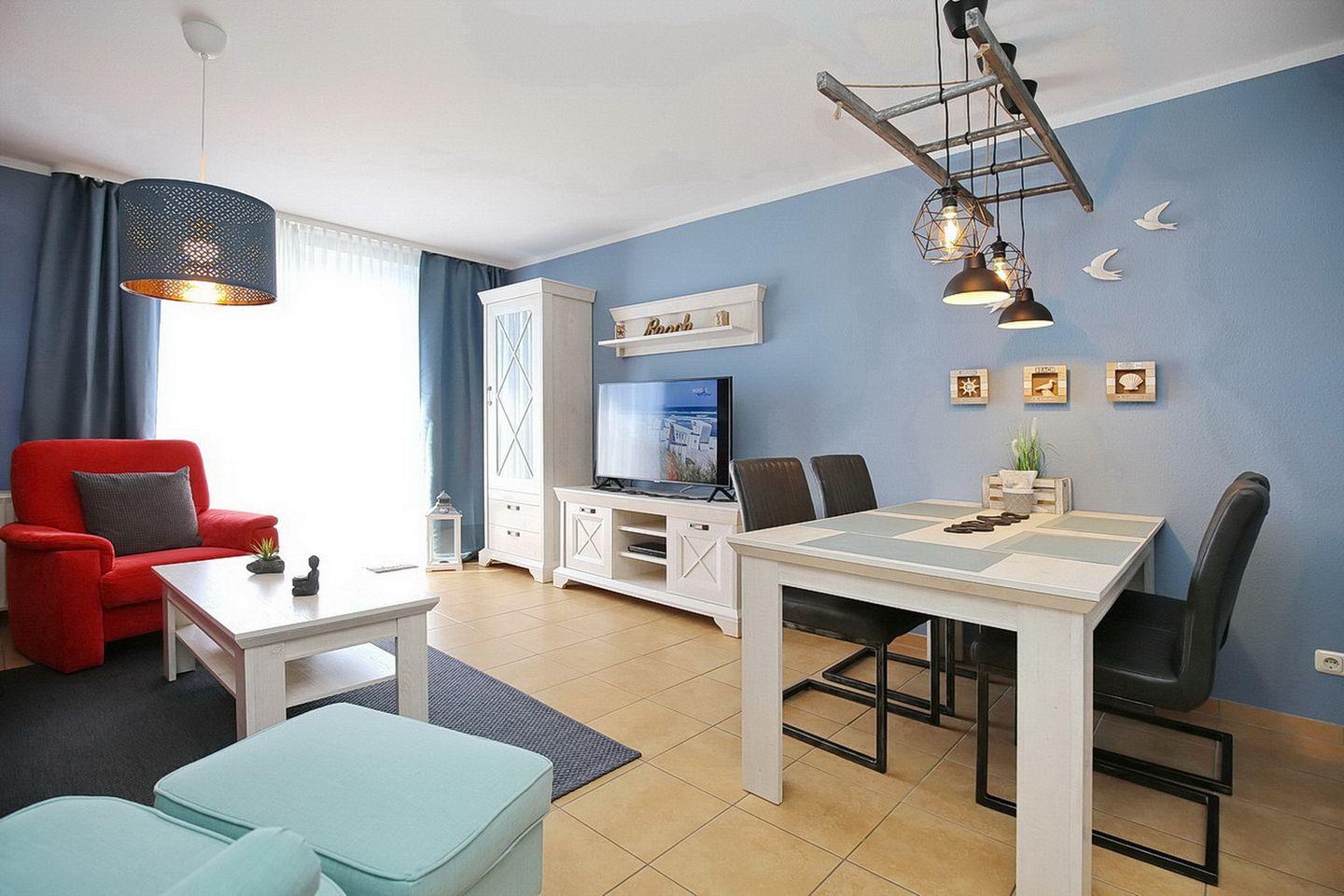 Das 3-Zi-Apartment mit Terrasse in Süd-Lage erstreckt sich über ca. 68 m² Wohnfläche und bietet dir und deinen Mitreisenden eine behagliche Unterkunft. Die Erdgeschosswohnung verfügt über einen Wohn- und Essbereich, zwei Schlafzimmer, ein Duschbad und eine Küchenzeile. Die Entfernung zum Strand beträgt von der Anlage Sünnslag ca. 400 m.