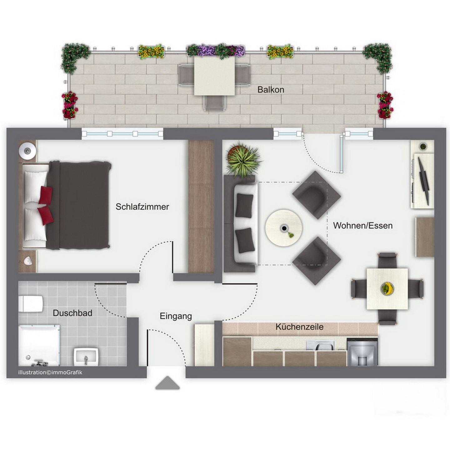 Die liebevoll eingerichtete Wohnung befindet sich im 1. OG und verfügt auf ca. 44 m² über ein Wohnzimmer mit Küchenzeile, ein Schlafzimmer, ein Duschbad sowie einen großen Südbalkon. Zum Strand sind es nur ca. 100 m.