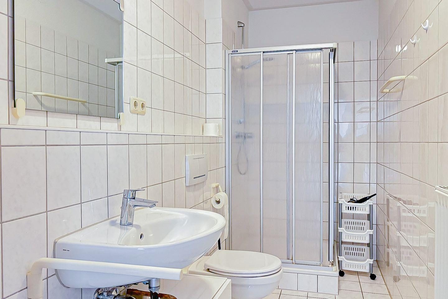 Ihre Urlaubsgarderobe können Sie in dem Kleiderschrank im Flur unterbringen. Der Boden der Ferienwohnung ist mit Designbelag ausgelegt. Das Duschbad ist gefliest. In dieser Nichtraucherwohnung sind Haustiere nicht erlaubt.