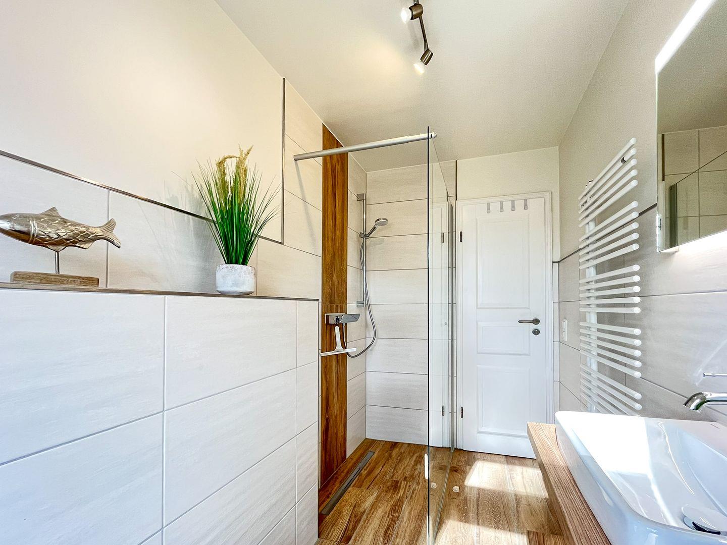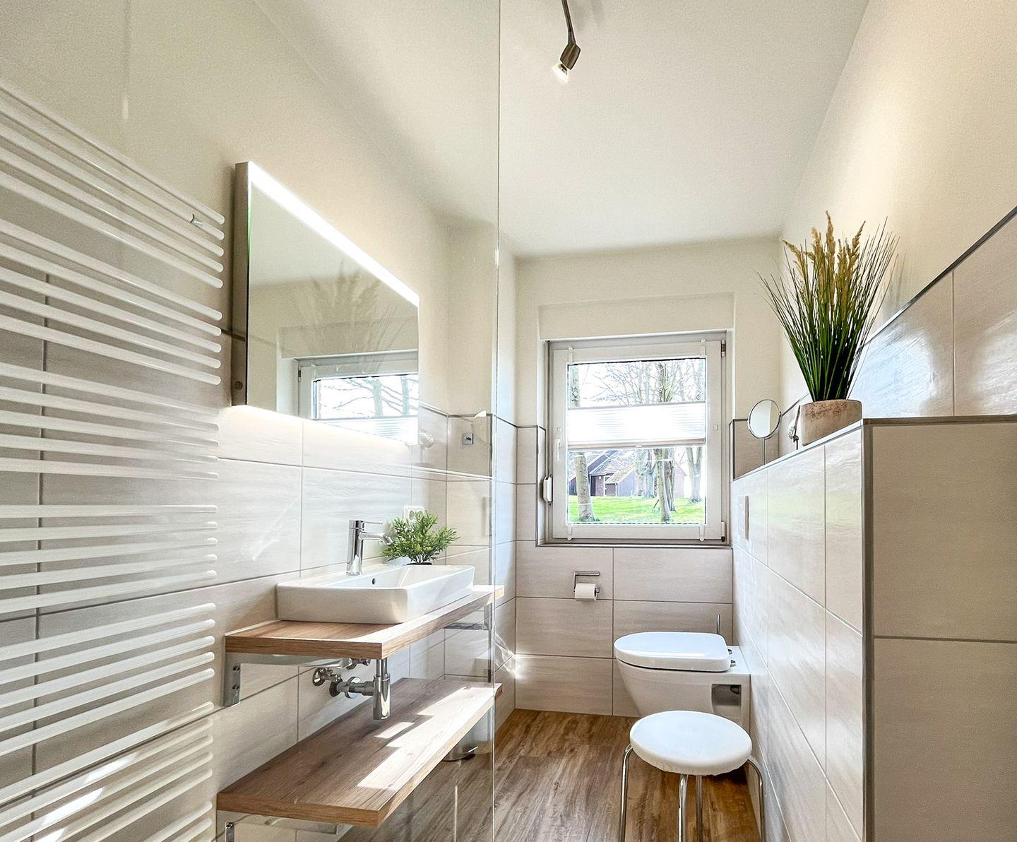 Das Tageslichtbad im Erdgeschoss verfügt über eine Dusche. Beide Badezimmer wurden 2024 ebenfalls renoviert.