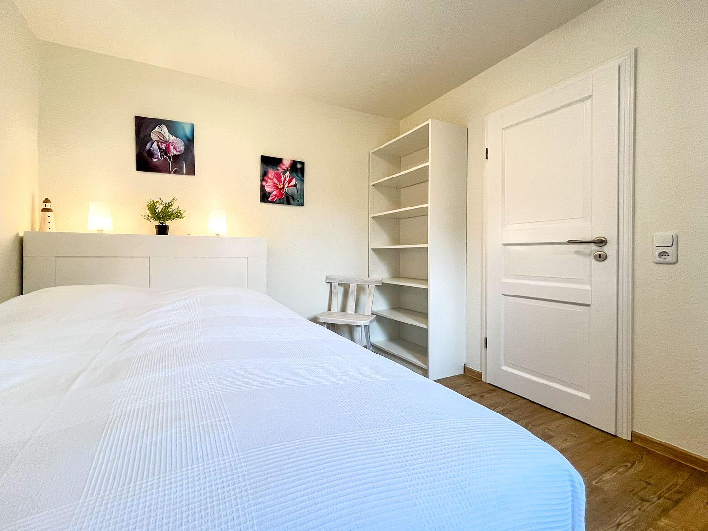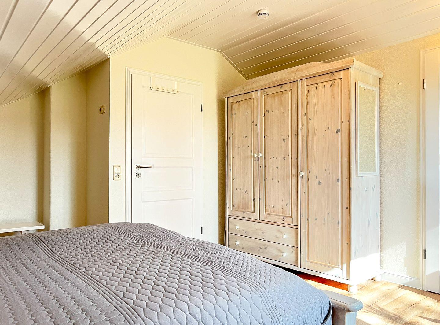 Das untere Schlafzimmer des Ferienhauses verfügt über ein kleines Doppelbett (140 x 200).