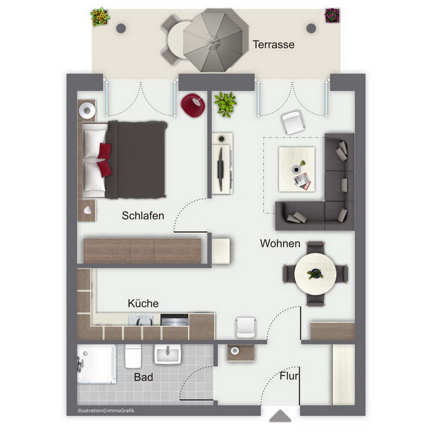 Im Haus 2 bewohnst du ein 2-Zimmer Apartment für bis zu 4 Personen. Die ca. 45 m² Ferienwohnung liegt im Erdgeschoss und verfügt über eine Terrasse mit West-Ausrichtung. Es stehen ein Schlafzimmer, ein Wohn- und Essbereich, eine Küchenzeile und ein Duschbad zur Verfügung. Die Entfernung zum Strand beträgt von der Anlage Dünenblick ca. 50 m.