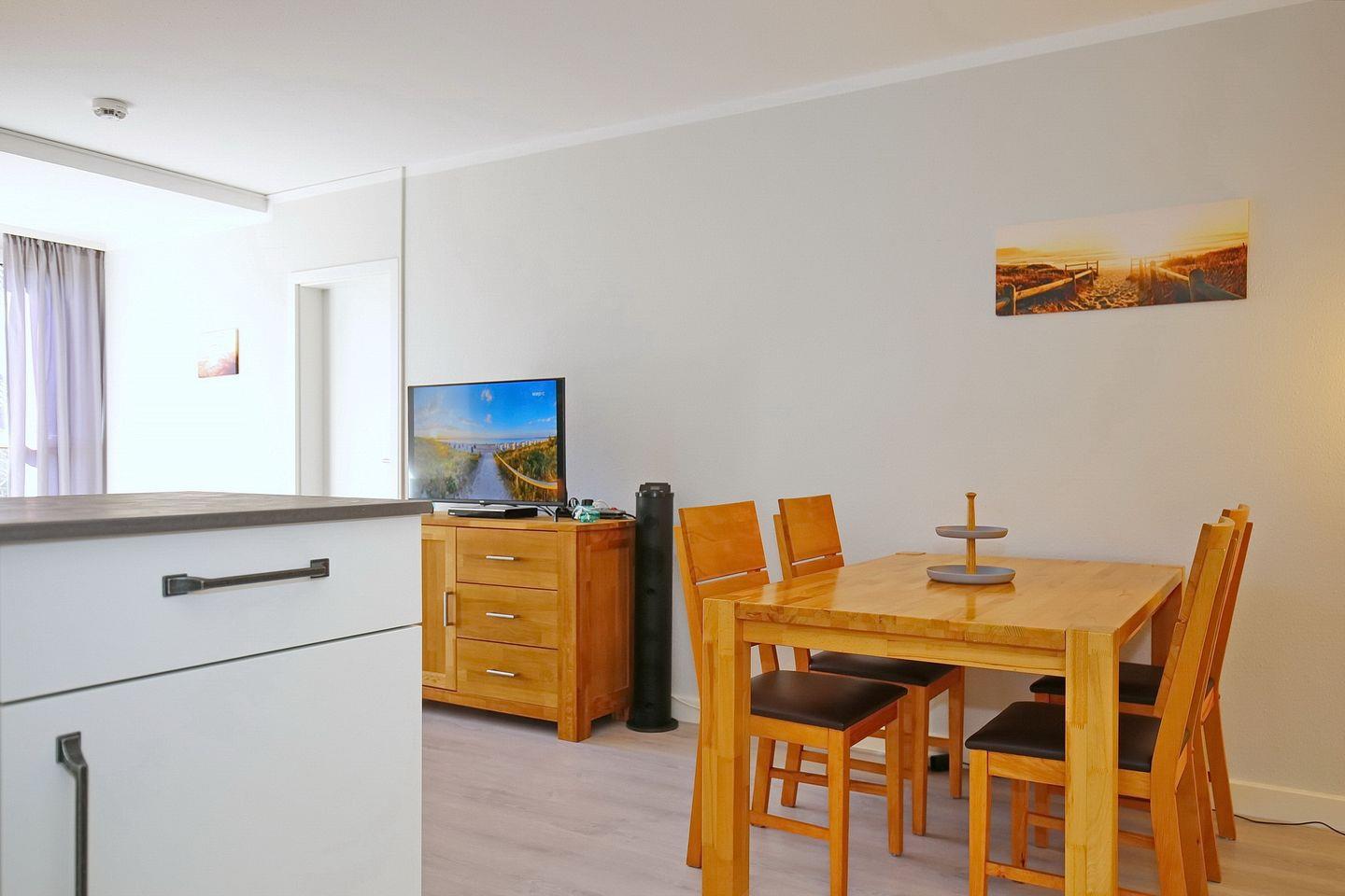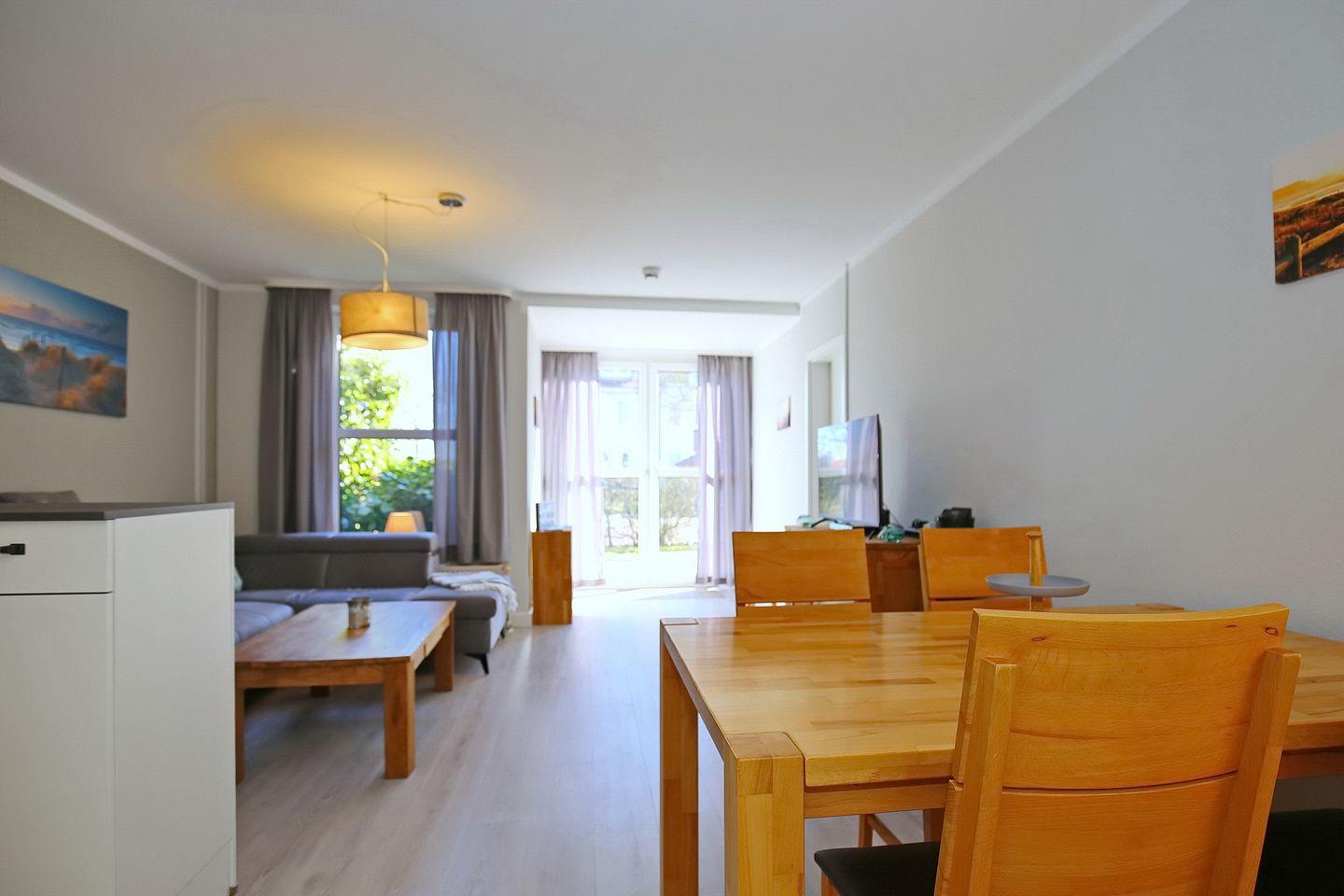 Die Wohnung Nr. 54 befindet sich im Erdgeschoß und verfügt über 3 Zimmer. Die ca. 6,0 m² große Terrasse in Richtung Süden lädt zum Sonnenbaden ein. Als Schlafmöglichkeiten erwarten Sie 2 Doppelbetten und 1 Doppelschlafcouch. WLAN (ohne Gewähr) inklusive.