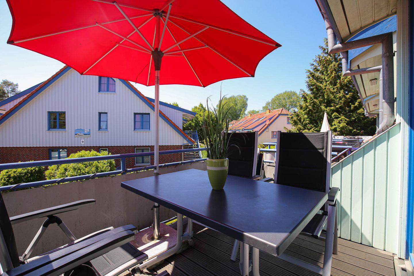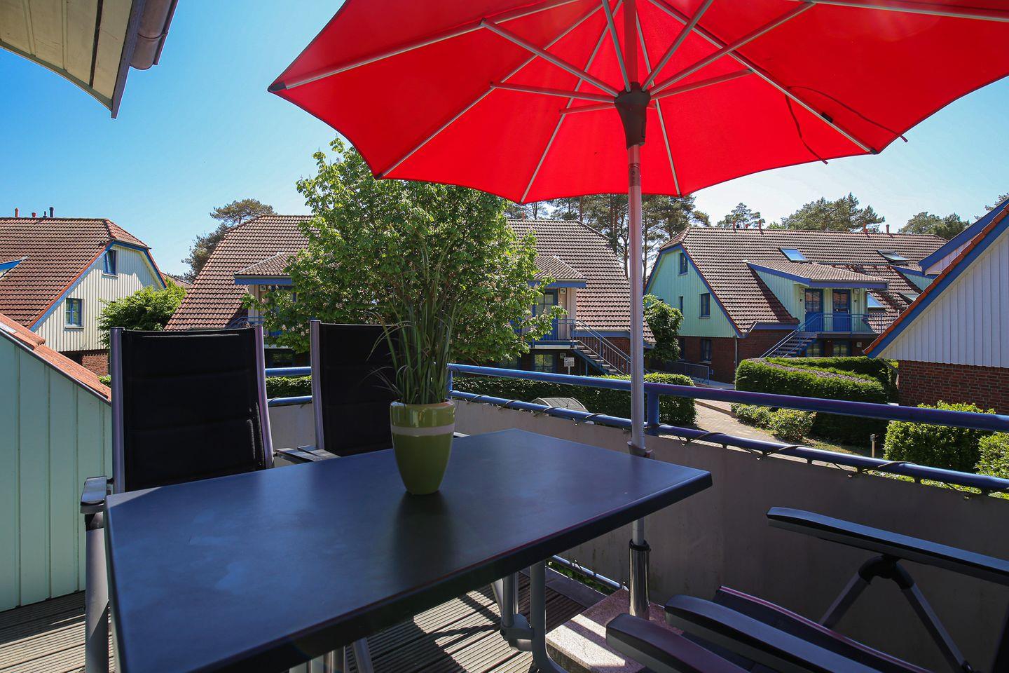Dein modernes und geschmackvoll eingerichtetes 4-Zi-Appartement mit einem Balkon in Süd-West-Lage liegt im 1. OG am Anfang des Hauses 10. Über eine Außentreppe gelangst du zur Wohnung. Diese hat eine Wohnfläche von 70 qm und verläuft über 2 Etagen. Du bewohnst einen Wohn- und Essbereich, drei Schlafzimmer, eine Küchenzeile und ein Duschbad. Zum Strand sind es vom Papillon nur 250 m.