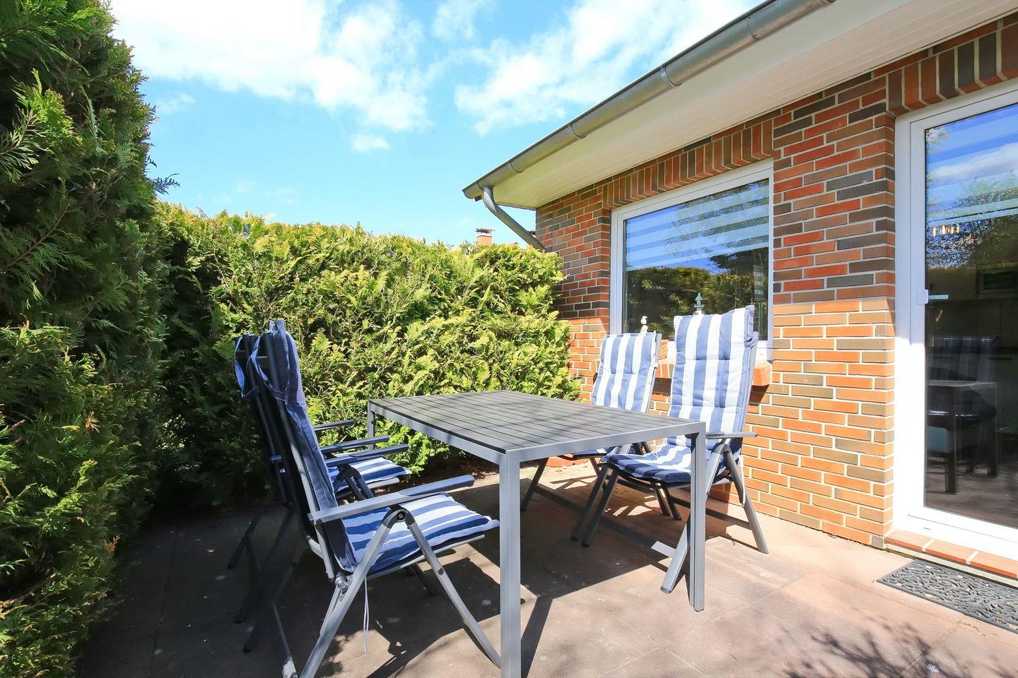 Im Wohnzimmer lädt eine gemütliche Eckgarnitur zum Ausruhen ein. Ein Flachbild-TV und eine kleine Stereoanlage mit CD-Player bieten umfangreiche Abwechslung. In den kälteren Monaten sorgt der Kamin für Behaglichkeit und Wärme. Das Ferienhaus verfügt über eine schöne süd-westlich ausgerichtete Terrasse, die vom Wohnzimmer aus betretbar ist. Selbstverständlich findest du bequeme Gartenstühle mit Auflagen vor. Du findest hier den idealen Platz für die Entspannung in freier Natur.