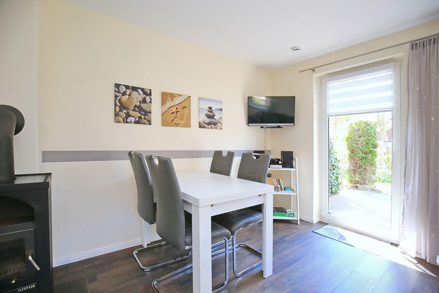 Die in den Wohnbereich integrierte Küchenzeile bietet dir neben einer vollständigen Ausstattung natürlich einem 4-Platten-Ceranfeld mit Backofen und einen Geschirrspüler. Ein gemütlicher Essplatz für gesellige Abende mit der Familie befindet sich in unmittelbarer Nähe der Küchenzeile.