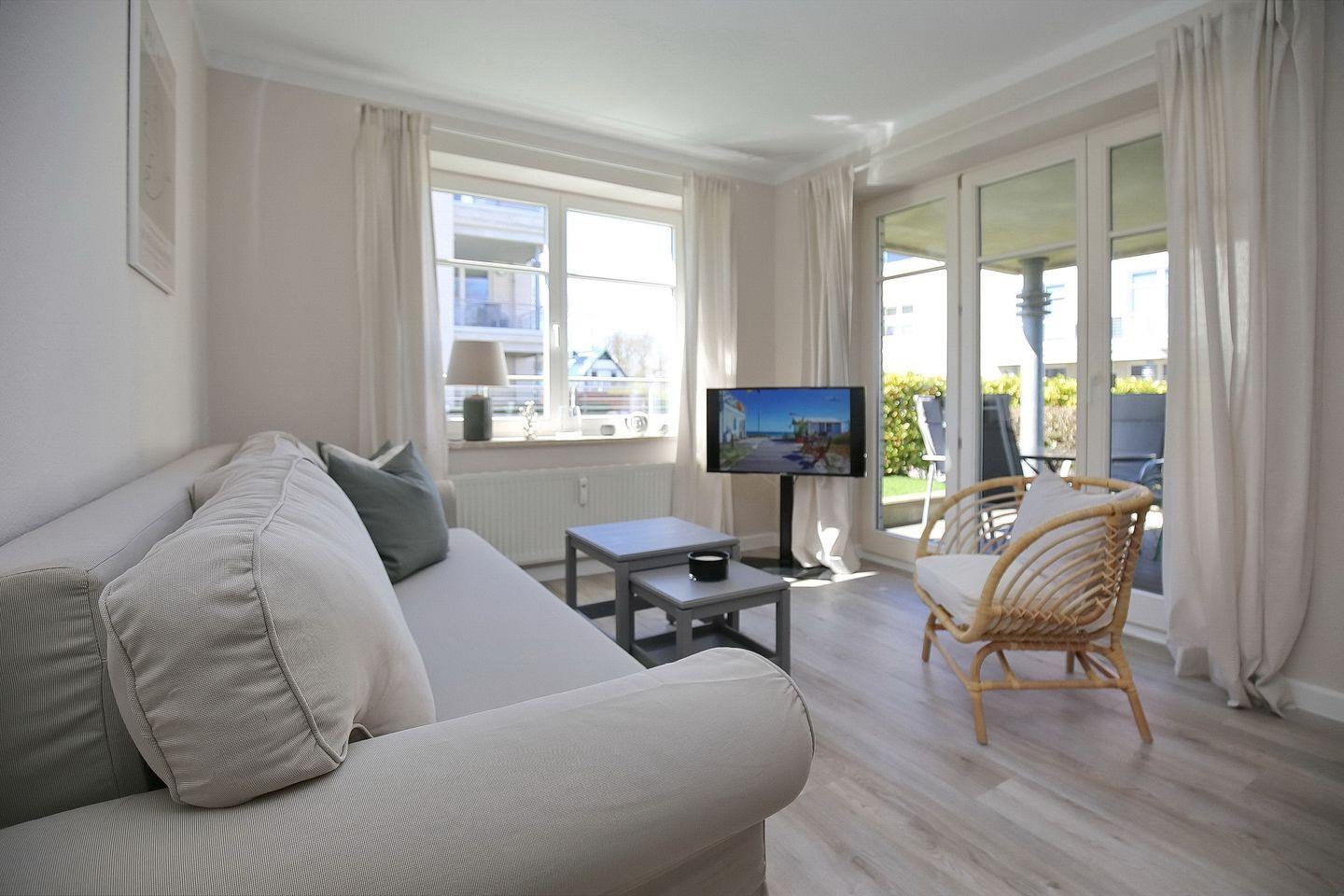 Die Ferienwohnung Nr. 3 in der Anlage Dünenblick befindet sich im Erdgeschoss im Haus 1 und verfügt über ca. 52 m² verteilt auf 3 Zimmer. Sie bietet Platz für 4 Personen.
