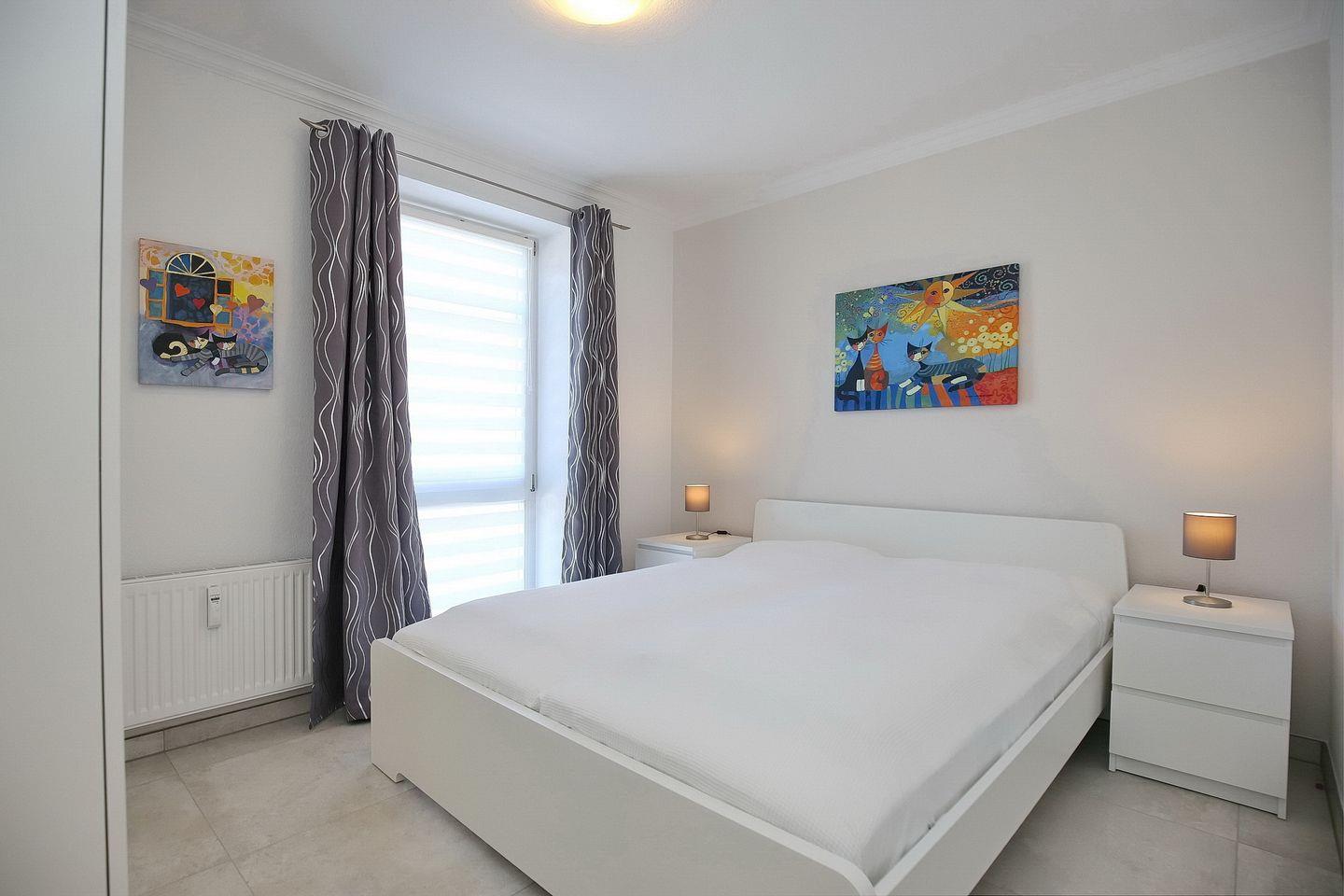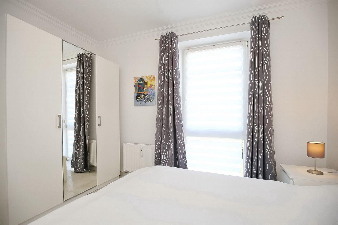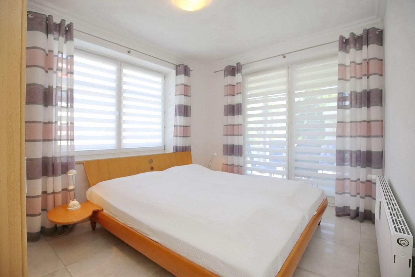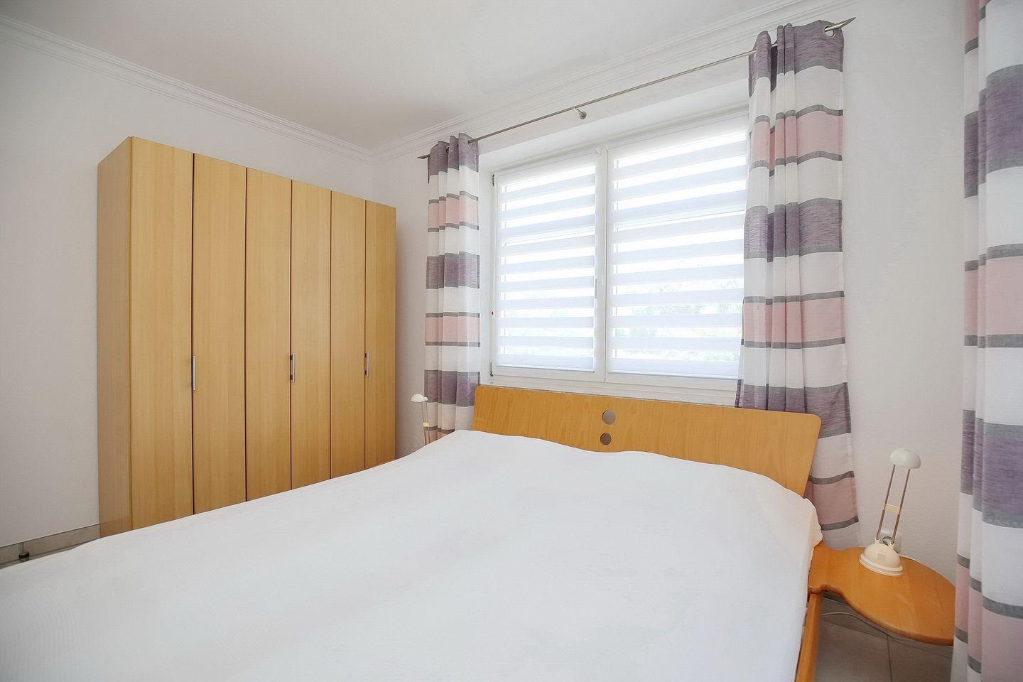 In den Schlafzimmern stehen zwei Doppelbetten (2 x 90 x 200 cm) breit. Ihr mitgebrachtes Urlaubsgepäck können Sie in die Kleiderschränke der jeweiligen Räume verstauen. Die Fenster werden mit Vorhängen verdunkelt.