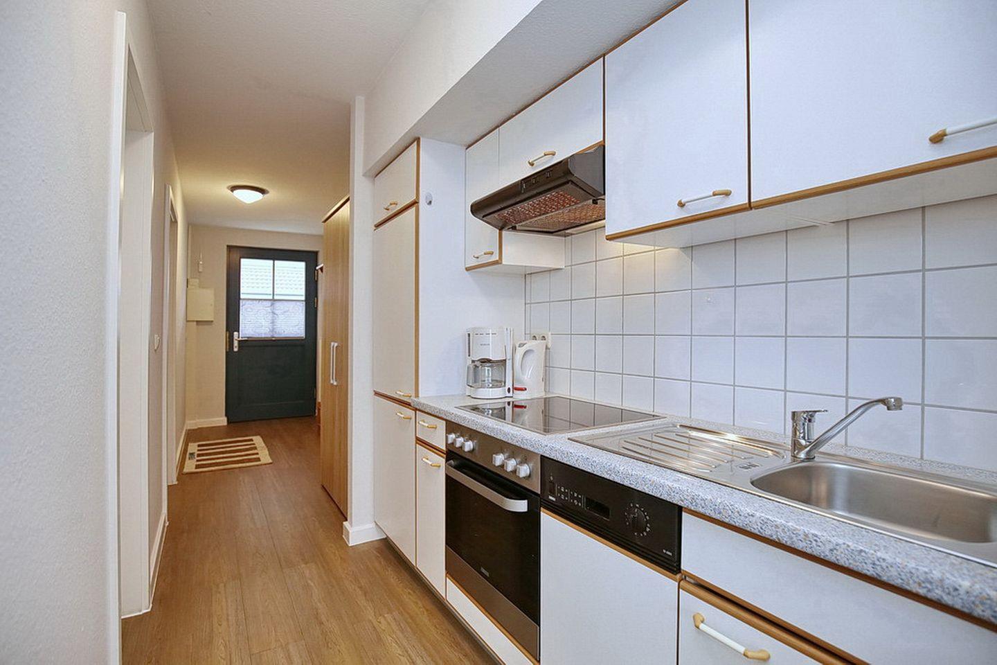 Ein Geschirrspüler, ein 4-Platten-Cerankochfeld mit Backofen gehören ebenso zur Ausstattung der Küchenzeile wie ein Kühlschrank mit Gefrierfach. Im gesamten Wohn- und Schlafbereich ist mit einem modernen Vinylbelag ausgelegt.