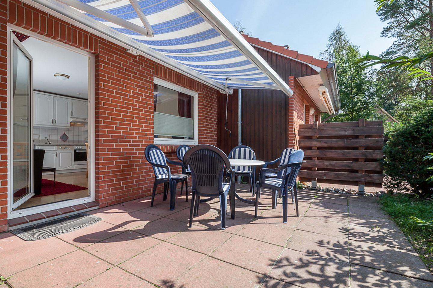Die süd-westlich gelegene Terrasse ist vom Wohnzimmer aus zu betreten und möbliert. Hier kannst du die Sonne genießen und nach einem erlebnisreichen Urlaubstag entspannen.