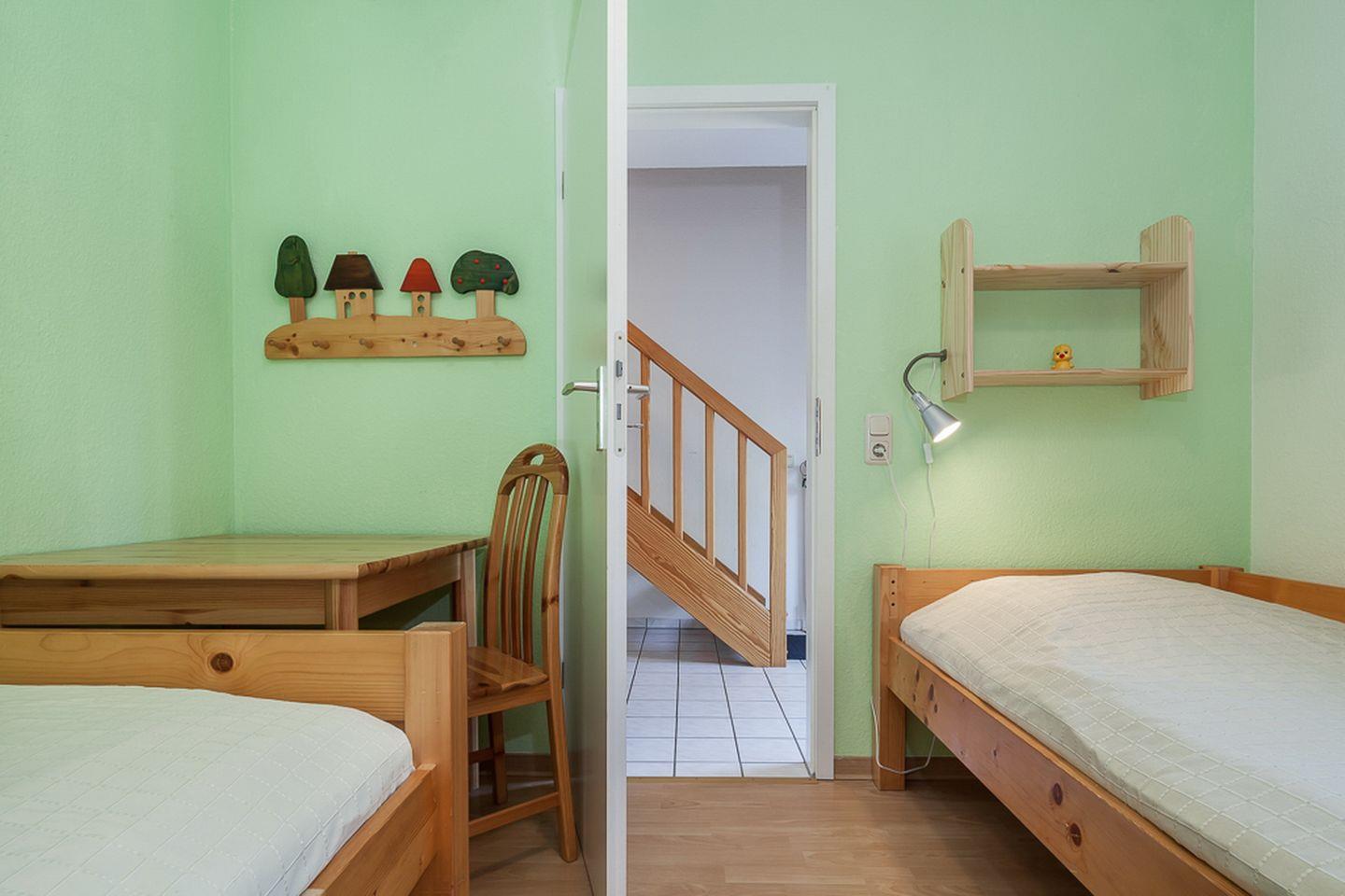 In diesem Ferienhaus stehen dir zwei Schlafzimmer zur Verfügung. Das Schlafzimmer im Erdgeschoss bietet zwei Einzelbetten (je 90 x 200 cm). Im Obergeschoss befindet sich das 2. Schlafzimmer mit einem Doppelbett (2 x 90 x 200 cm). Ein zusätzlicher Fernseher steht dir hier zur Verfügung. Für die kleinen Gäste stehen ein Kinderbett mit separater Kinderbettmatratze und ein Hochstuhl bereit. Außerdem kann ein Bollerwagen (ohne Rechtsanspruch) genutzt werden.