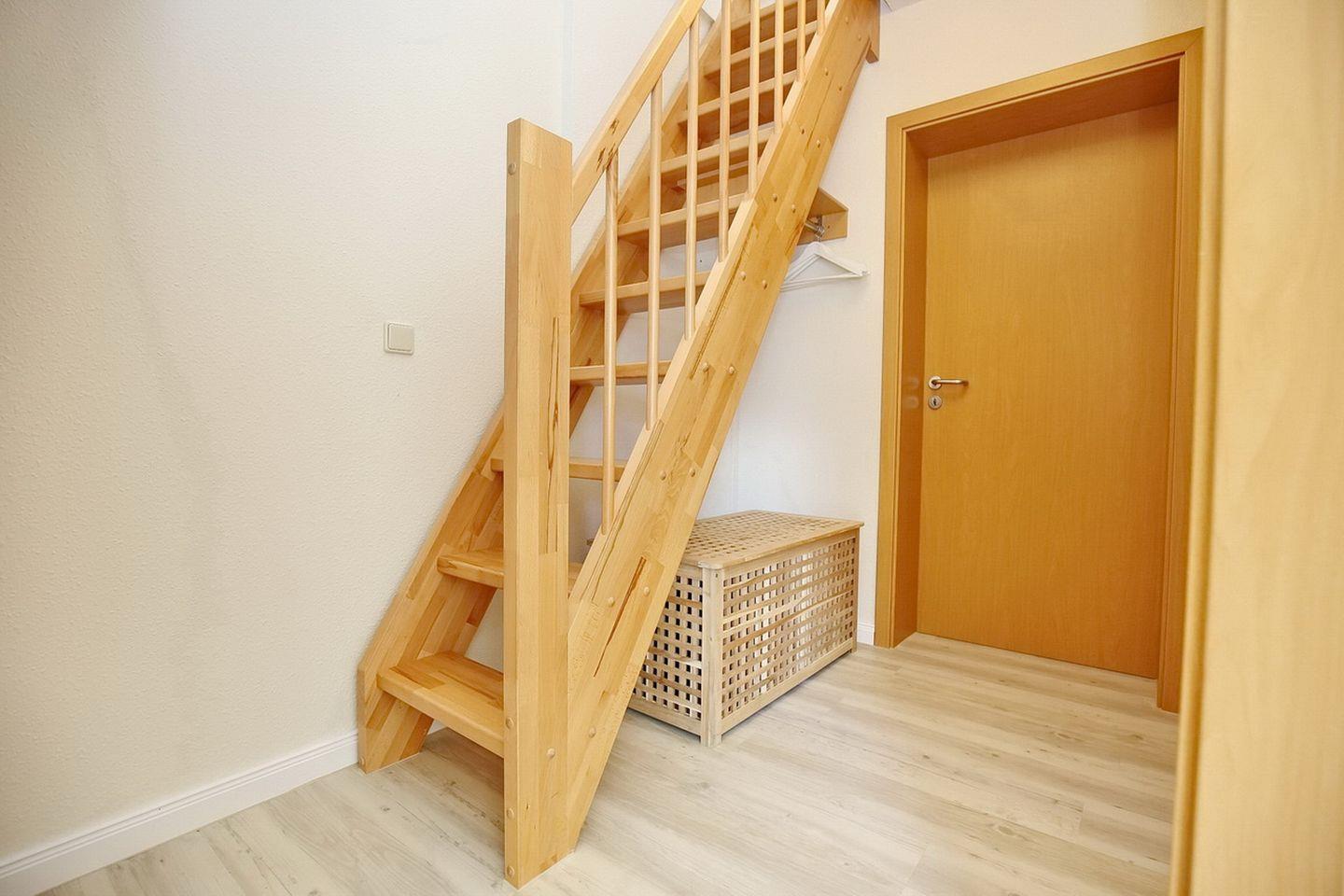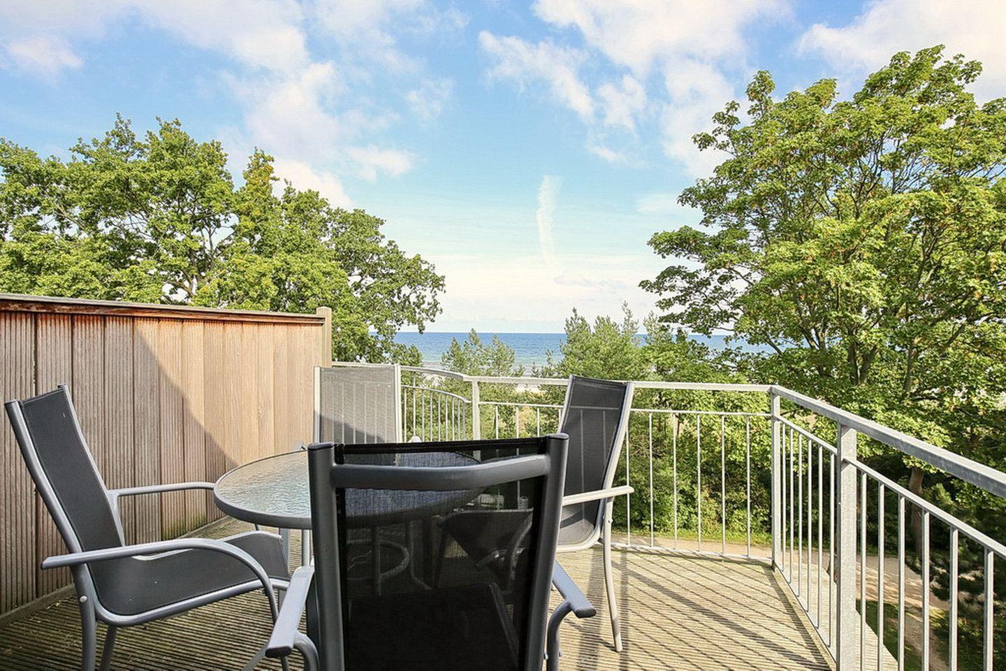 Die Seeblick-Wohnung mit 65 m² verläuft über zwei Etagen und verfügt über zwei separate Schlafräume, von denen einer ein offener Schlafraum ist, einen Wohn- und Essbereich und ein Vollbad. In der gesamten Ferienwohnung ist ein Vinylbelag ausgelegt. Zum Strand sind es von hier nur ca. 25 m.