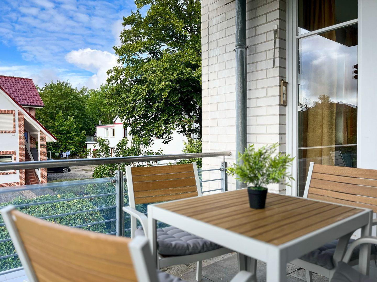 Die Ferienwohnung 24 in der Anlage Dünenblick in Boltenhagen ist eine 2-Zimmer-Wohnung für bis zu 4 Personen. Die 2-Zimmer-Ferienwohnung liegt im 1. Obergeschoss und hat einen Balkon in Süd-West Lage. Ein kostenfreies Kinderbett und WLAN (ohne Gewähr) sind vorhanden.
