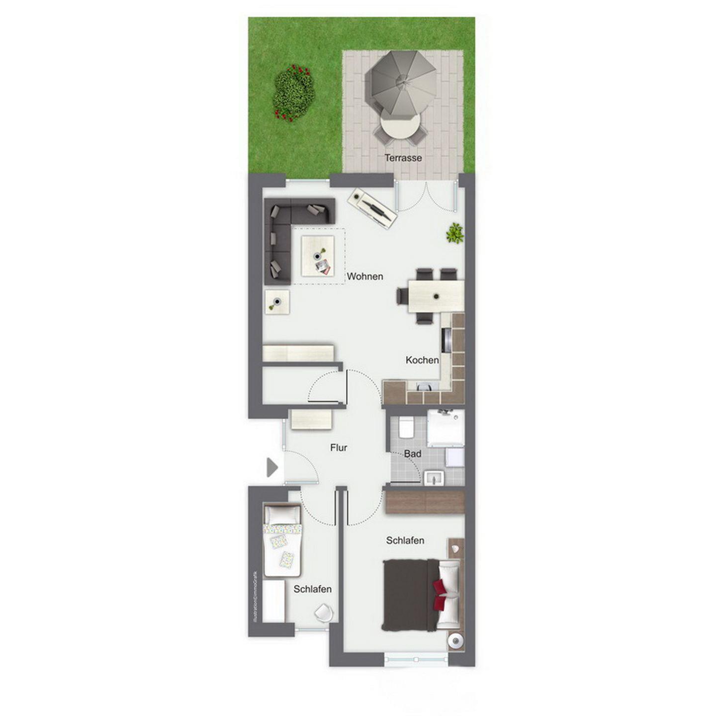 Die Wohnung mit ca. 55 m² liegt im Erdgeschoss. Du gelangst über einen separaten Eingang in die Wohnung. Hier findest du ein Wohnzimmer mit Küchenzeile, zwei Schlafzimmer, ein Duschbad und eine Terrasse vor. Die Entfernung zum Strand beträgt von der Ferienanlage Sünnslag ca. 400 m.