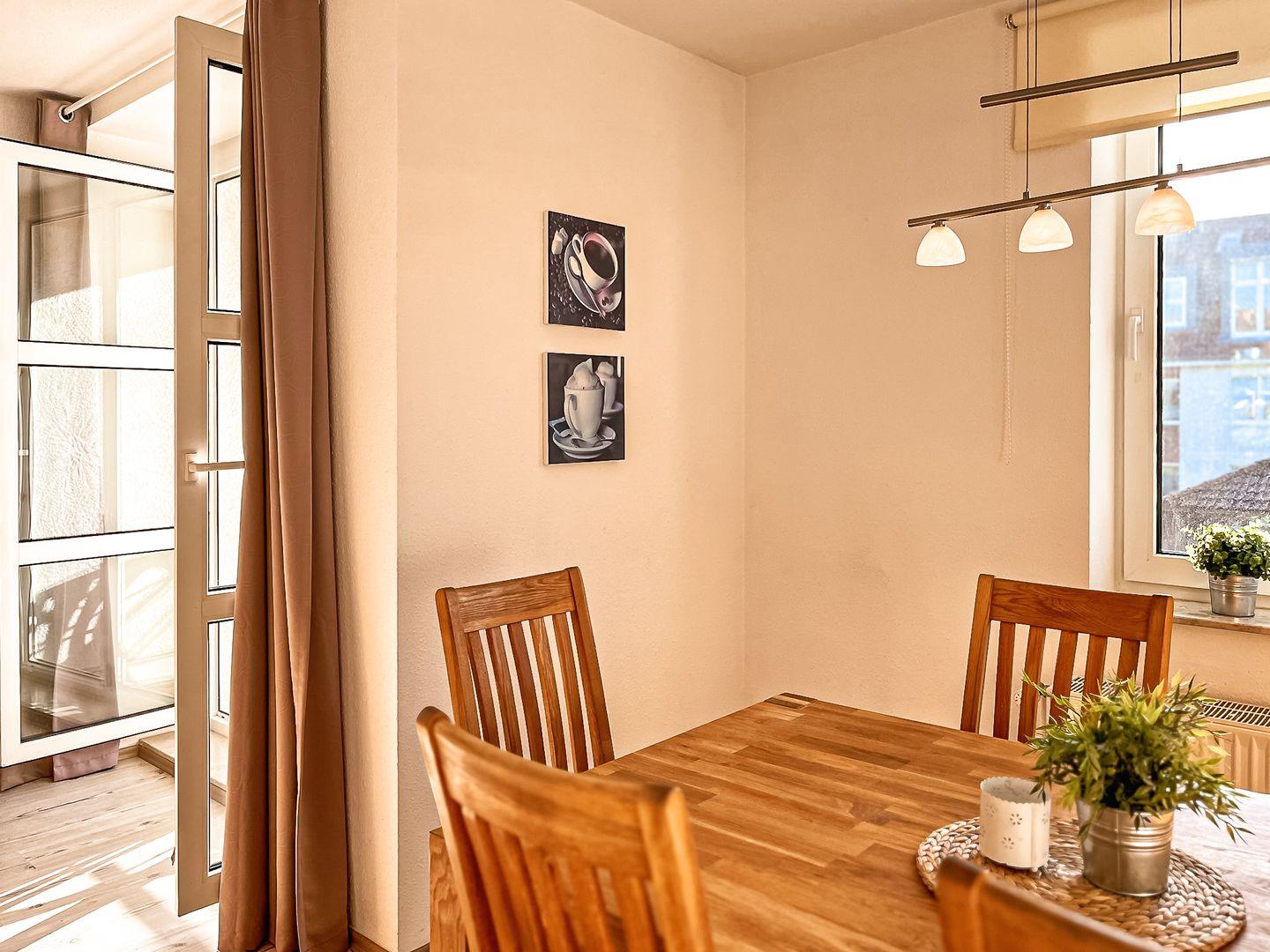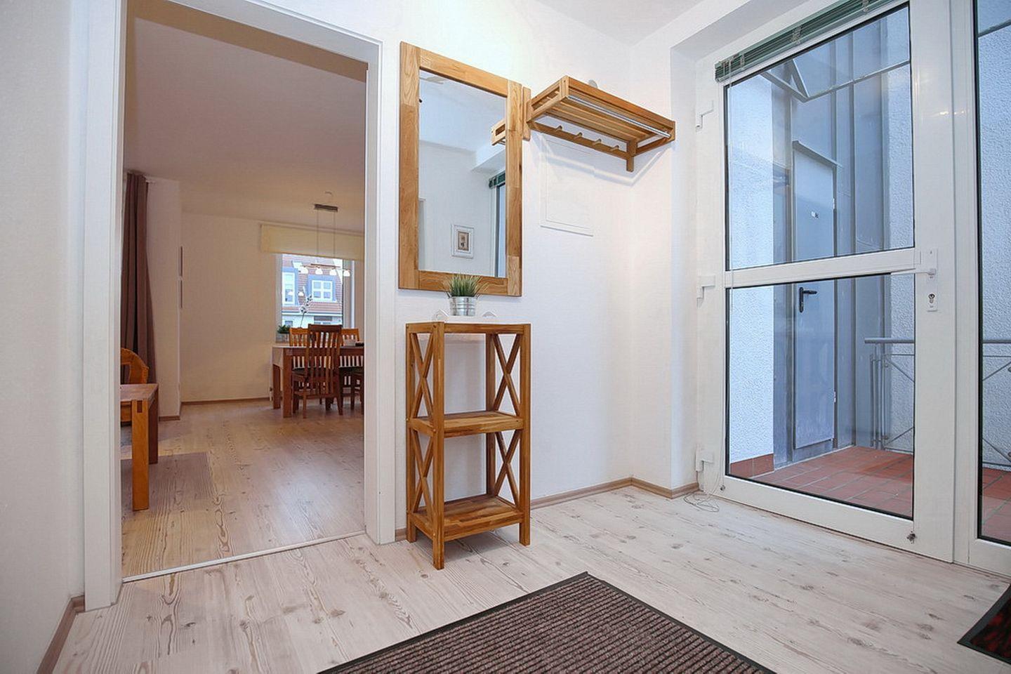 Im 1. OG liegt diese ca. 48 m² große und zeitgemäß möblierte Wohnung. Der Balkon ist in Süd-Ost-Lage ausgerichtet. Du erreichst deinen eigenen Zugang zu dieser Wohnung über eine Außentreppe. Mit einem Wohn- und Essbereich, einer separaten Küche, einem Schlafzimmer und einem Duschbad gibt es viel Platz für bis zu vier Personen. Zum Strand sind es von der Anlage Sünnslag nur ca. 400 m.