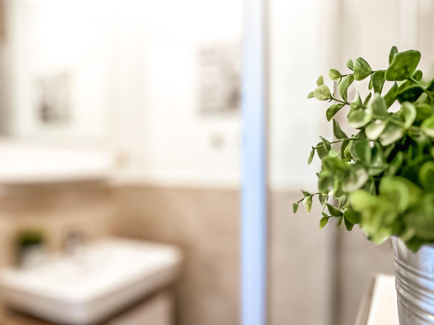 Auch ein gefliestes Duschbad steht zur Verfügung. In dieser Nichtraucherwohnung sind Haustiere nicht erlaubt.