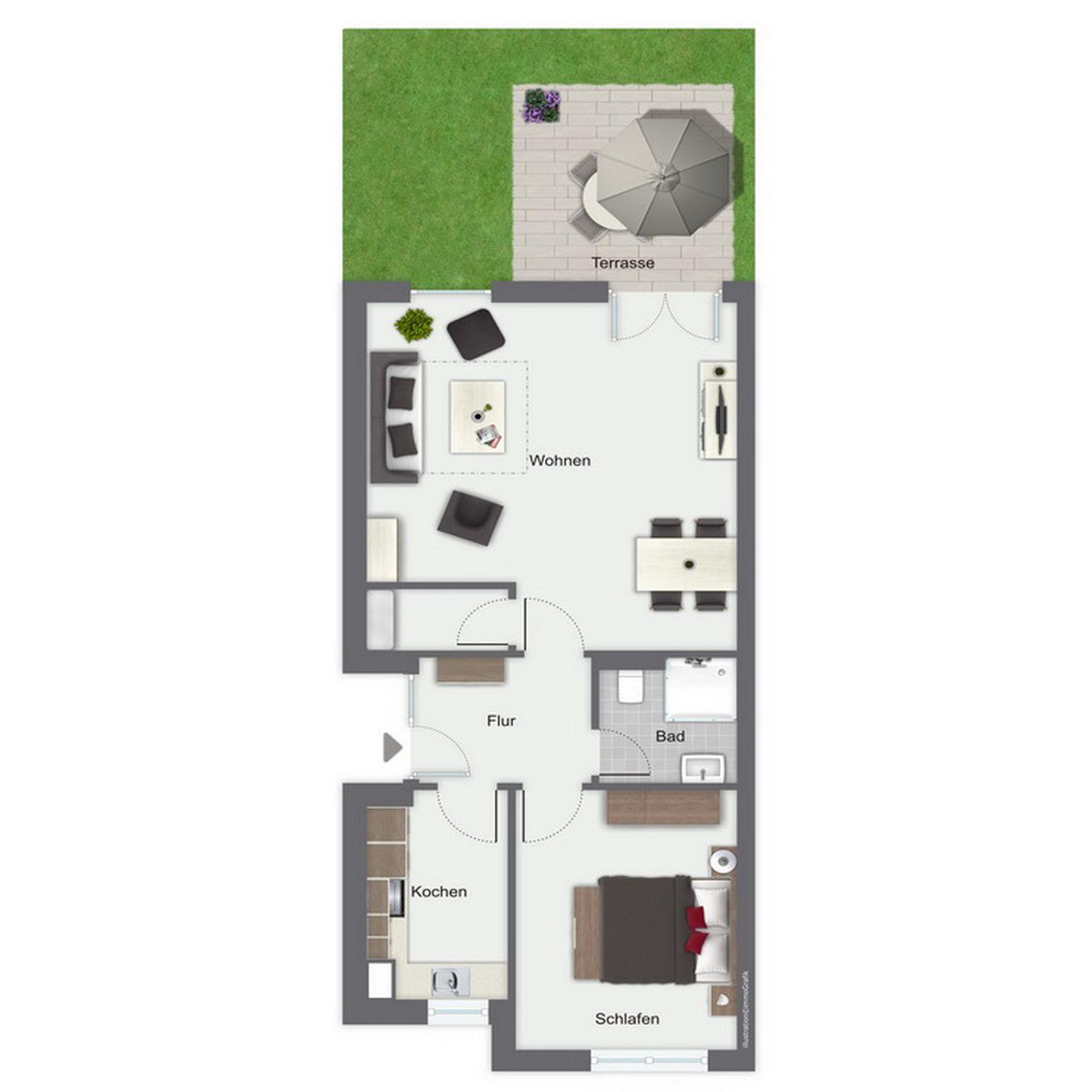Du bewohnst im Erdgeschoss ein komfortables 2-Zi. Apartment mit Terrasse in Süd-Ost-Lage. Auf ca. 53 m² erwartet dich ein Wohn-/ Essbereich, ein Schlafraum, eine Küche sowie ein Duschbad. Die Strandentfernung beträgt von der Anlage Sünnslag ca. 400 m.