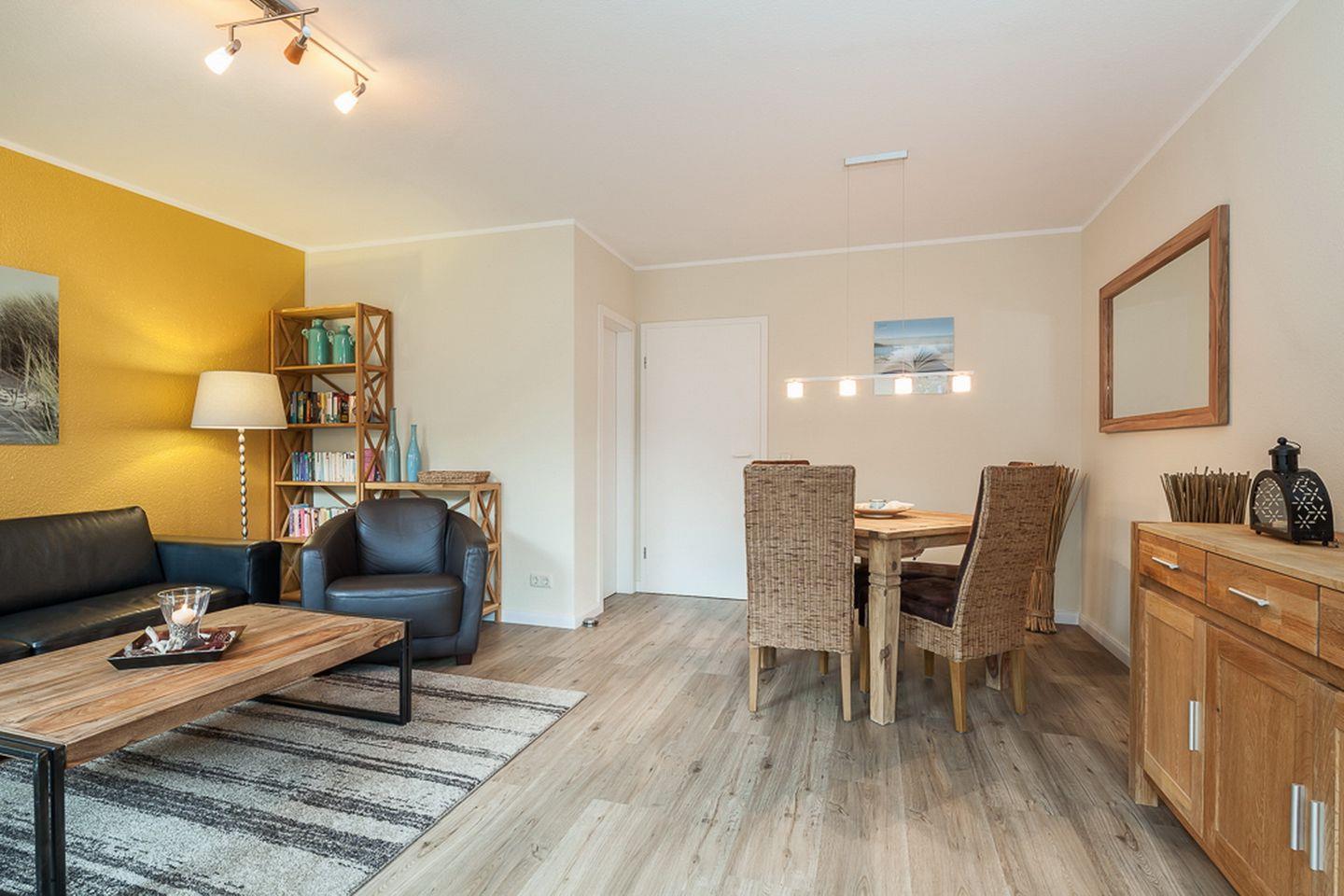 Diese gepflegte 2 Zimmerferienwohnung Nr. 73 verfügt über ein gemütliches und modernes Wohnzimmer mit großzügigem Essbereich sowie eine Terrasse. Neben dem Flachbild TV sind auch ein Blue Ray-Player, sowie ein 2. Flachbild-TV im Schlafzimmer vorhanden. WLAN (ohne Gewähr) inklusive.
