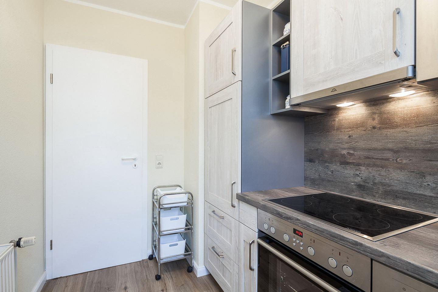 Die stilvolle Küche ist separat gelegen. Hier stehen ein Cerankochfeld, ein Backofen, eine Mikrowelle, ein Kühlschrank mit Gefrierfach und ein Geschirrspüler bereit. In dieser Ferienwohnung sind ein Kinderhochstuhl sowie ein Kinderbett inklusive.