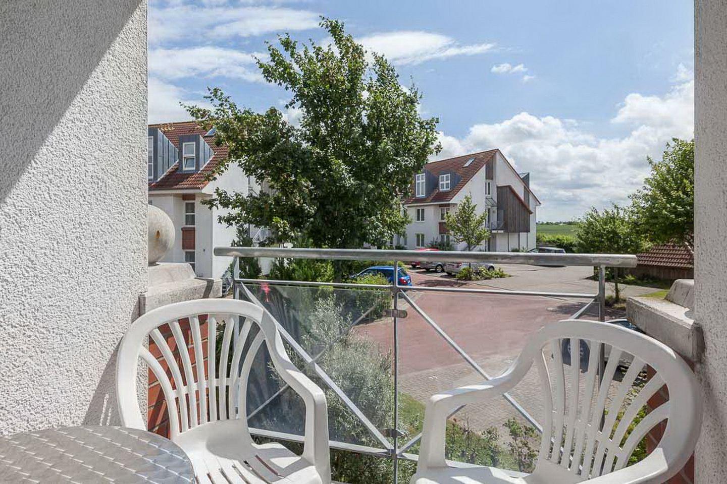 Die ca. 49 m² große 2-Zi-Ferienwohnung liegt im 1. Obergeschoss und ist über eine Gitteraußentreppe erreichbar. Du verbringst deinen Urlaub in einem schönen Wohn-und Essbereich, einer Küche, einem Schlafzimmer und einem Duschbad. Die Ausrichtung des Balkons ist süd-östlich. Die Strandentfernung beträgt von der Anlage ca. 400 m.