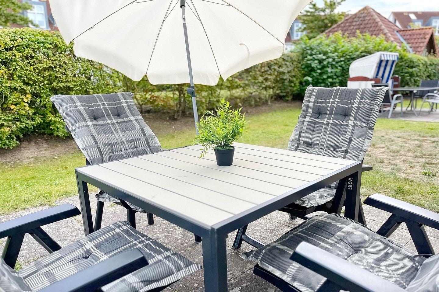 In unmittelbarer Nähe gehört ein PKW-Außenstellplatz zur Ferienwohnung. Fahrräder können in einen Schuppen am Haus abgestellt werden. Die Ferienanlage Sünnslag liegt eingebettet zwischen der Kastanienallee und begrünten ruhigen Seitenstraßen. Einkaufsmöglichkeiten sind nur ca. 200 m entfernt.