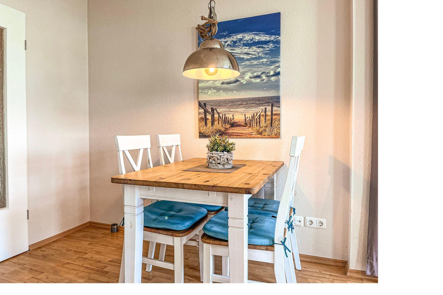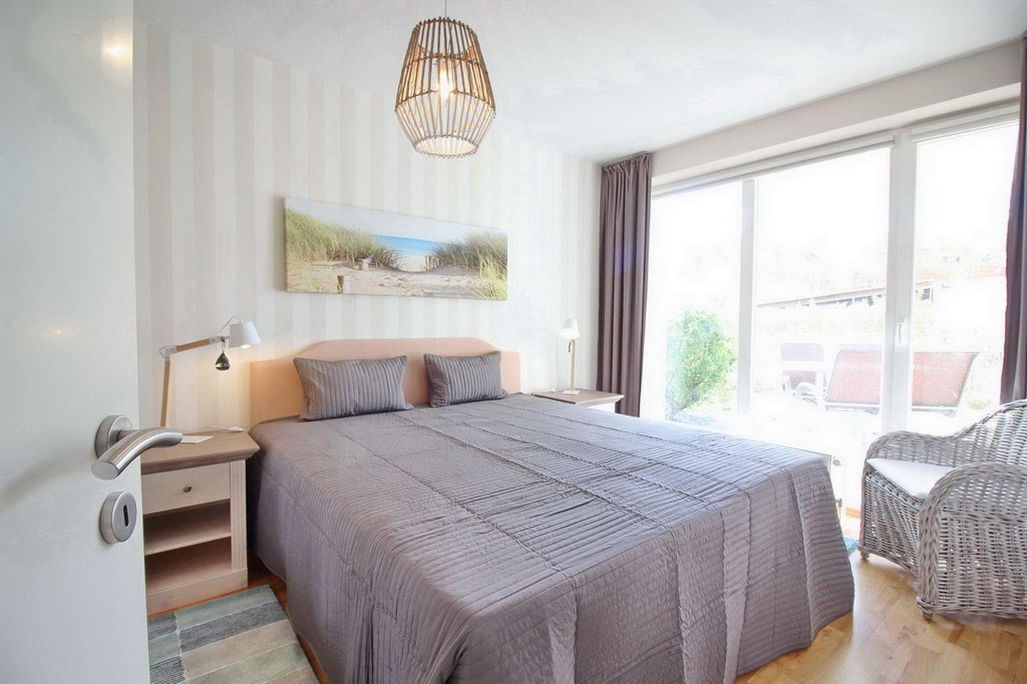 Auf ca. 50 m² verfügst du über ein Wohnzimmer mit Küchenzeile, ein Schlafzimmer, ein Duschbad und die westlich ausgerichtete Terrasse. Der Strand ist nur ca. 70 Meter entfernt.