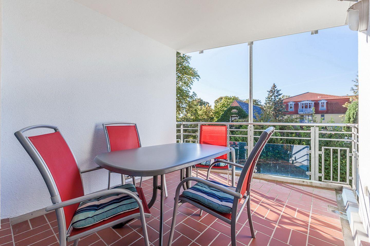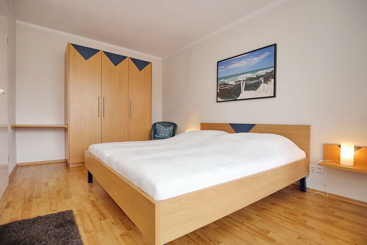 Die Ferienwohnung befindet sich im 1. OG und bietet dir auf etwa 46 m² ein Wohnzimmer mit Küchenzeile, ein Schlafzimmer, ein Duschbad sowie einen Balkon in Westlage. Zum Strand sind es nur ungefähr 70 Meter.