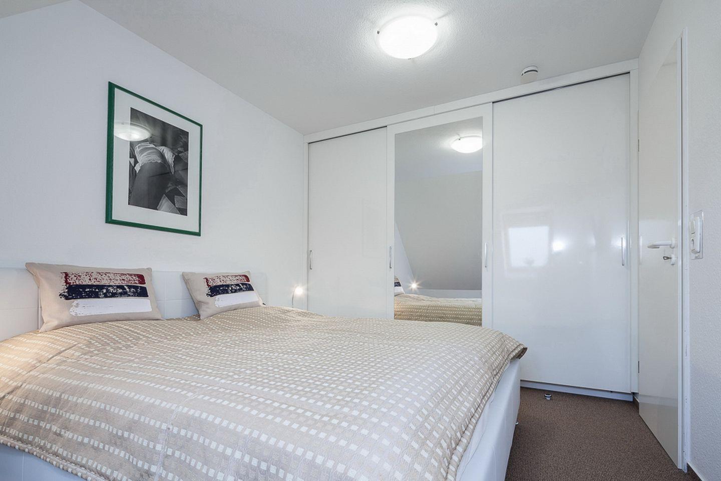 Die großzügig geschnittene, 75 m² große Wohnung verläuft über zwei Ebenen und bietet dir ein Wohnzimmer mit Küchenzeile, 2 Schlafzimmer, 2 Bäder und einen West-Balkon. Zum Strand sind es nur 70 Meter.