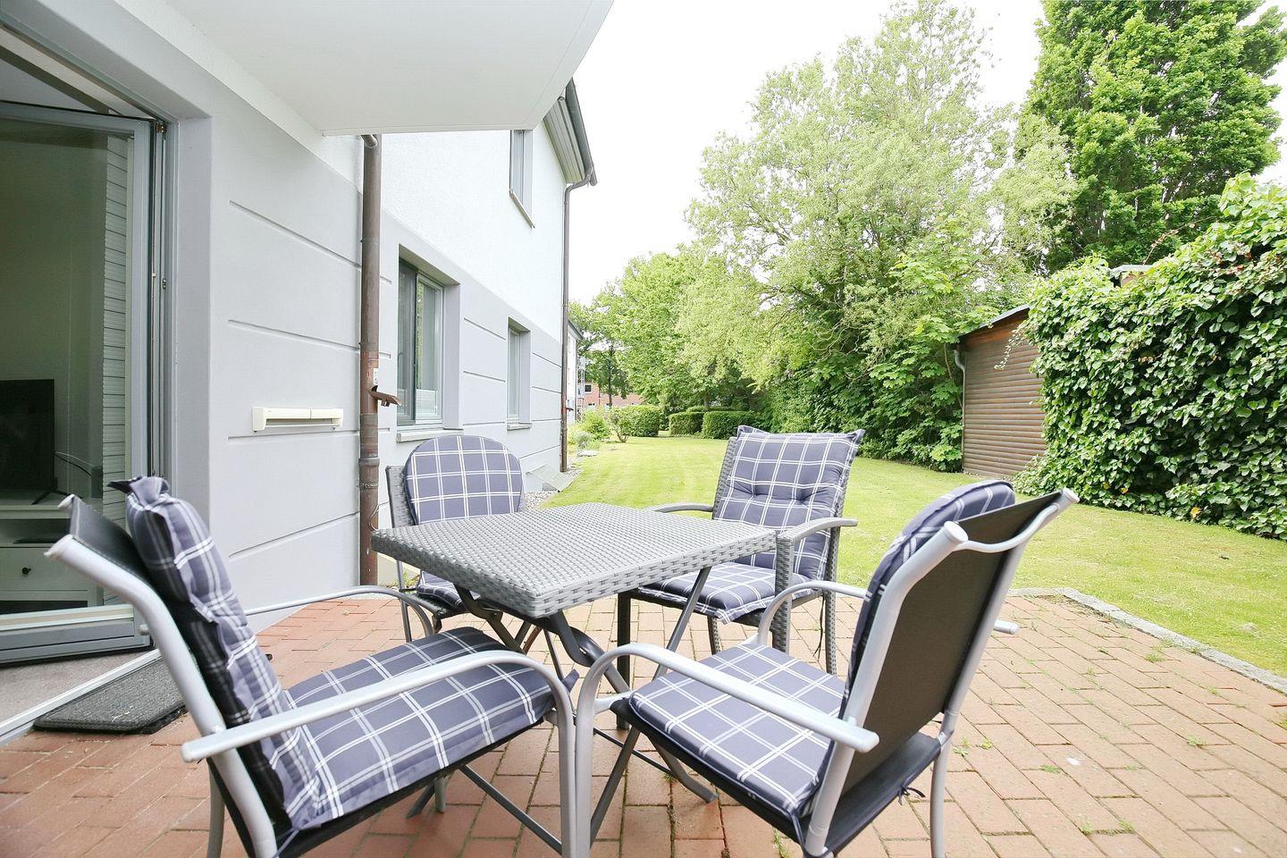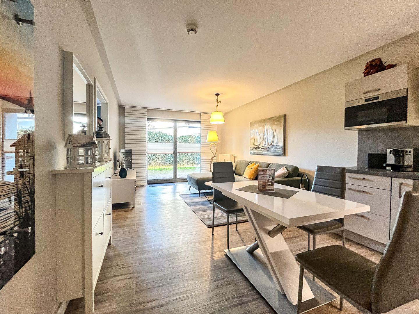 Die ca. 40 m² große Wohnung im Erdgeschoss verfügt über eine eigene Terrasse, ein Wohnzimmer mit Küchenzeile, ein Schlafzimmer sowie ein Badezimmer. Es sind nur 60 m zum Strand.