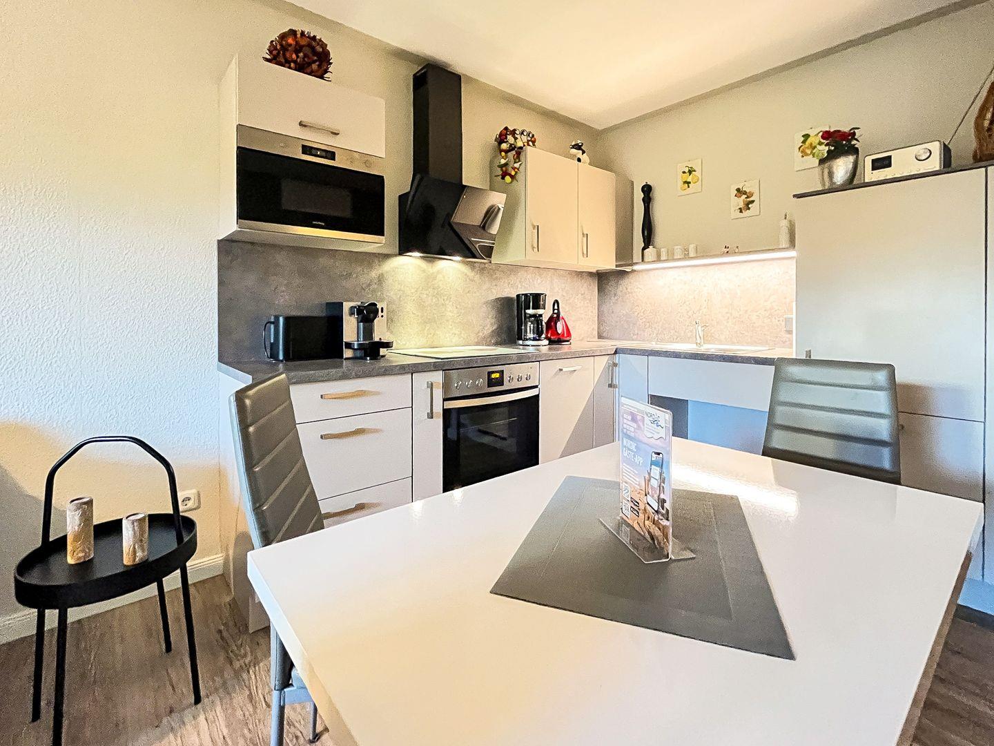Du kannst dich in der im Frühjahr 2021 neu eingebauten Küche selbst verpflegen. Hier stehen ein 4-Platten-Cerankochfeld, ein Backofen, ein Geschirrspüler, eine Mikrowelle und eine Nespresso (Kapselmaschine) sowie eine klassische Filtermaschine zur Verfügung. Der gemütliche Essplatz lädt zum Verweilen ein.