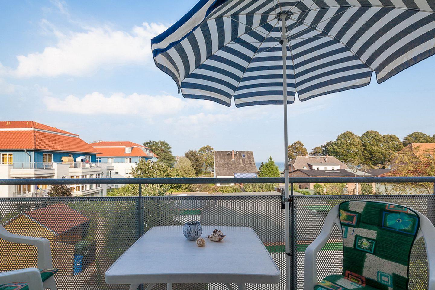Es erwartet dich im 2. OG des Hauses eine Ferienwohnung mit Balkon, der zur Seeseite und zur Ostsee ausgerichtet ist. Die 55 m² Wohnung bietet zwei Schlafbereiche, ein Wohn- und Esszimmer und ein Duschbad. Zum Strand sind es vom Ferienhaus am Deich ca. 100 m.