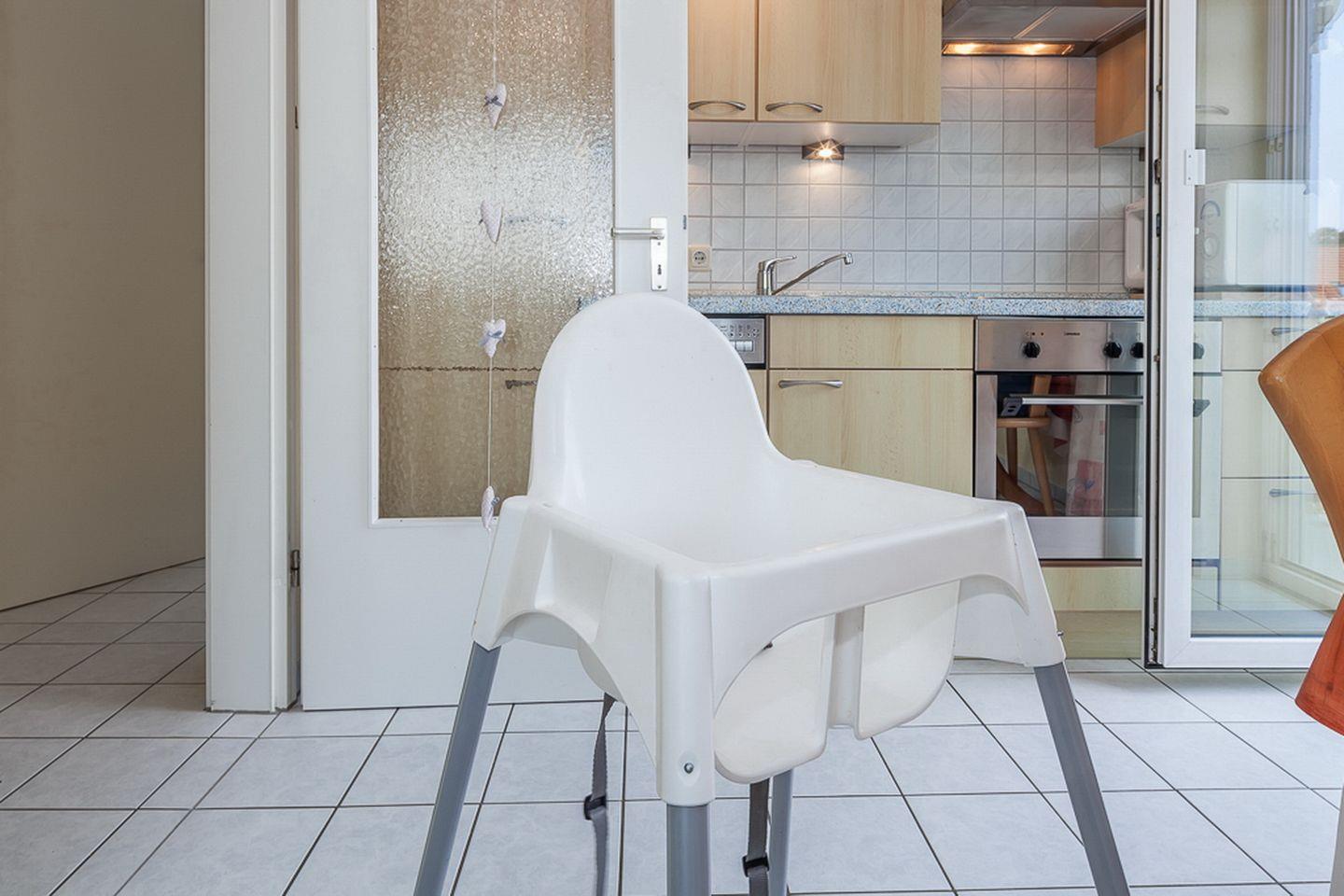 Den möblierten Balkon mit Seeblick erreichst du aus dem Wohnbereich. Das Wohnzimmer bietet eine bequeme Eck-Couch und einen Essplatz mit einem Kinderhochstuhl. Für Kurzweil sorgen eine Stereoanlage mit CD-Player, ein Flachbild-TV, ein DVD-Player und eine Auswahl an Spielen.