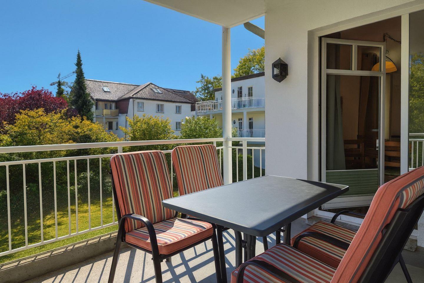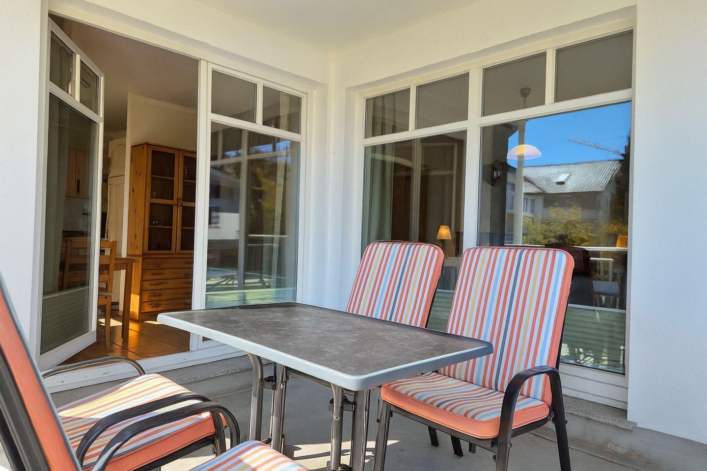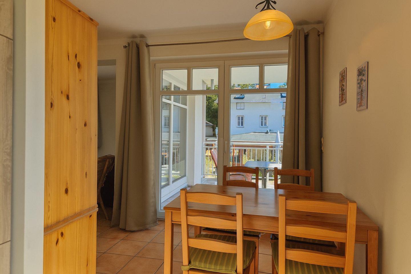Die Ferienwohnung bietet auf 49 m² den Wohn-Schlafraum, die Küche, das Duschbad sowie einen Nord-Ost Balkon. Die Strandentfernung beträgt ca. 70 Meter.